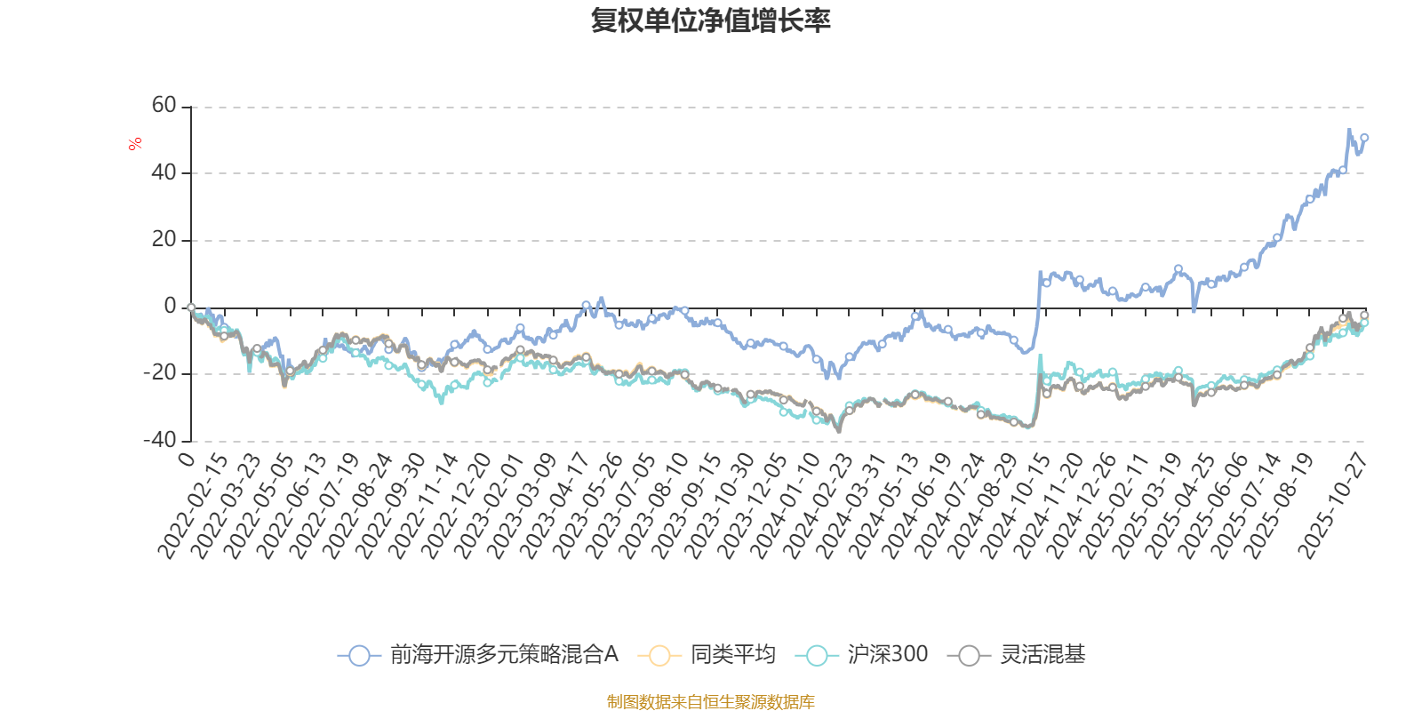 截至10月27日,前海开源多元策略混合A近三个月复权单位净值增长率为18.35%,位于同类可比基金434/1287;近半年复权单位净值增长率为40.96%,位于同类可比基金259/1287;近一年复权单位净值增长率为37.84%,位于同类可比基金286/1287;近三年复权单位净值增长率为77.85%,位于同类可比基金49/1286。