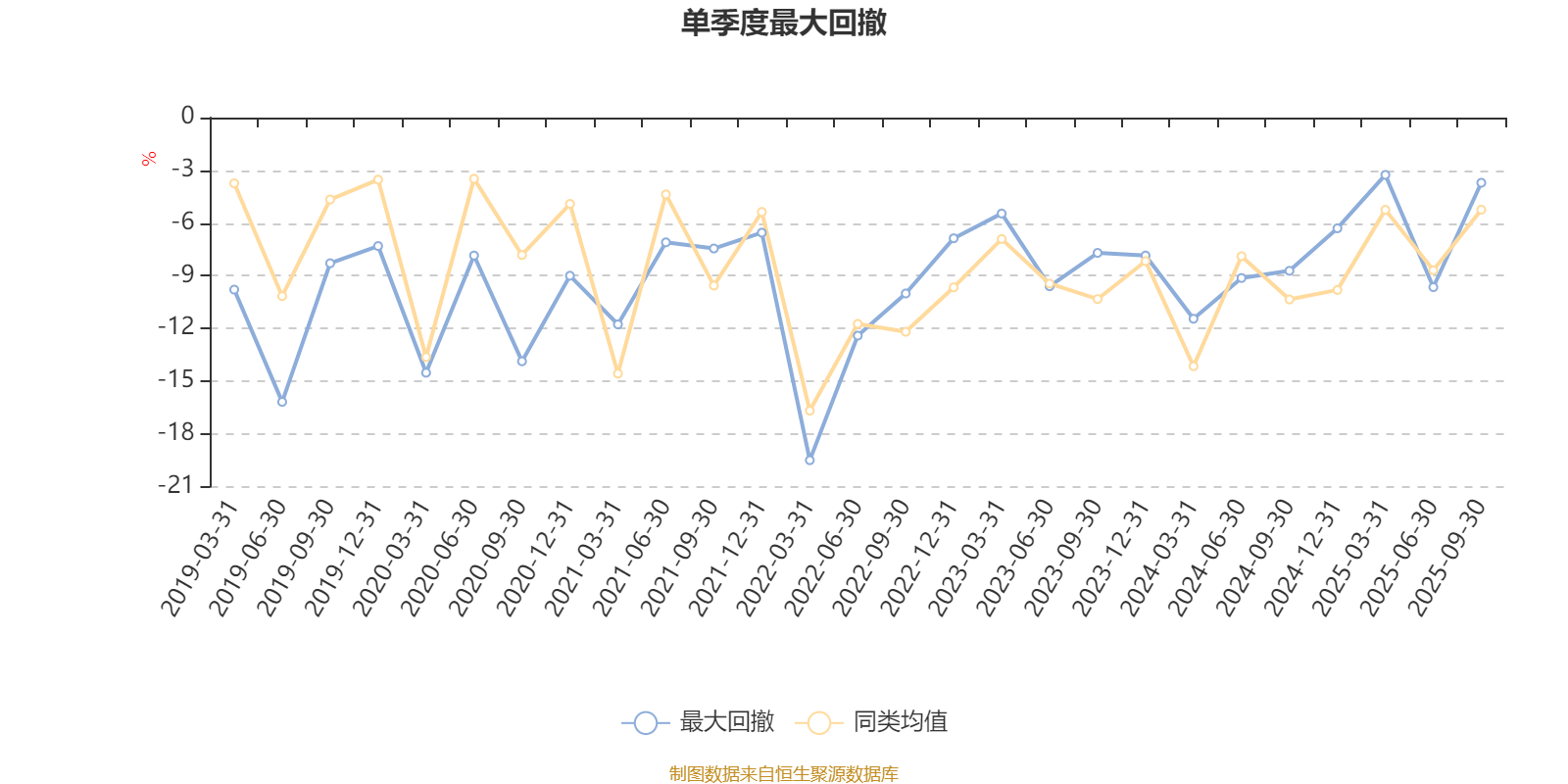 截至10月27日,基金近三年最大回撤为24.01%,同类可比基金排名350/1274。单季度最大回撤出现在2022年一季度,为19.5%。