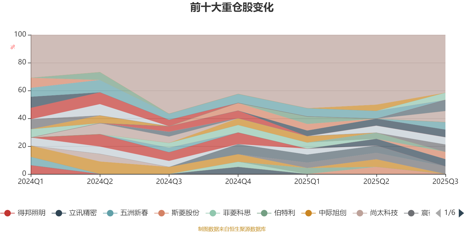 截至2025年三季度末,基金十大重仓股分别是三花智控、拓普集团、震裕科技、浙江荣泰、新泉股份、万向钱潮、嵘泰股份、豪能股份、科博达、德昌电机控股。