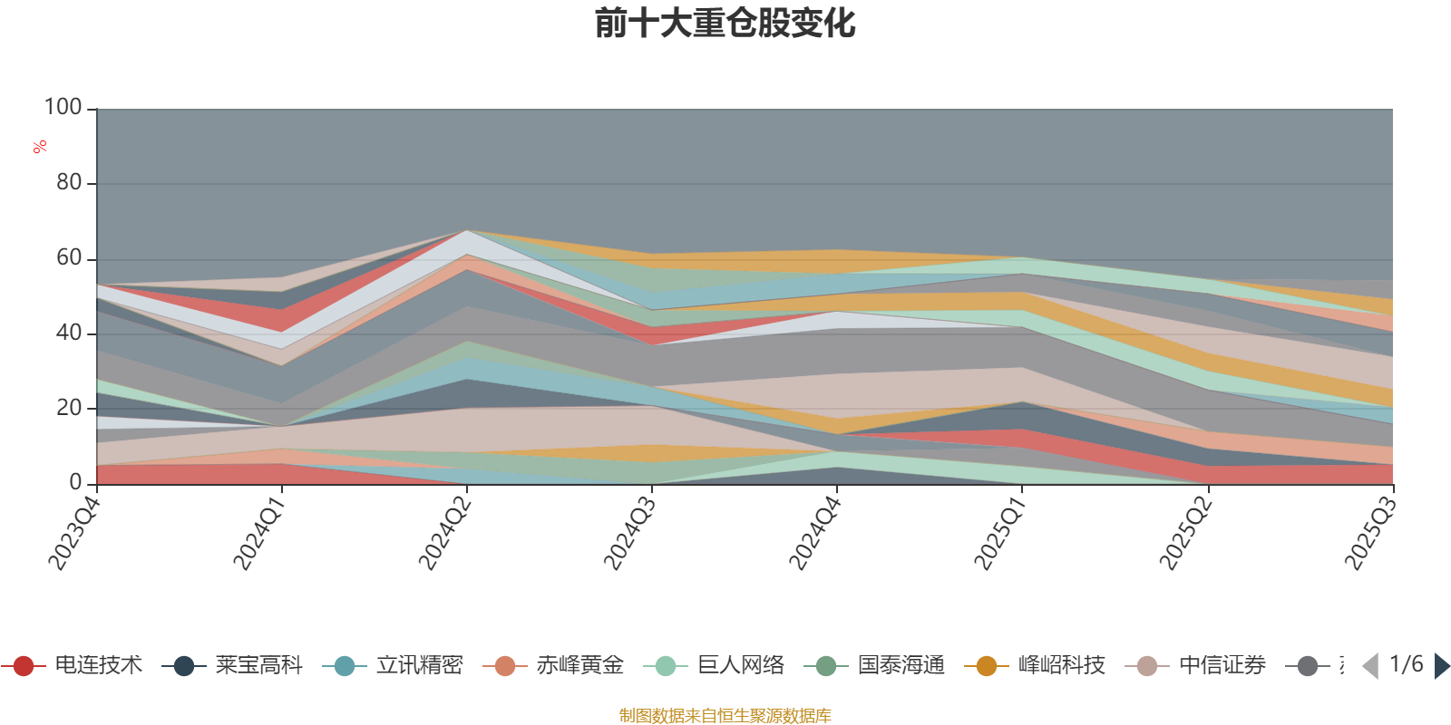 该基金持股集中度较高。截至2025年三季度末,基金十大重仓股分别是恒瑞医药、歌尔股份、广发证券、美亚光电、博实结、安琪酵母、天岳先进、中兴通讯、华勤技术、欣旺达。