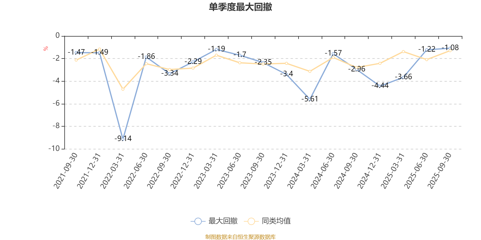 截至10月27日,基金近三年最大回撤为7%,同类可比基金排名309/535。单季度最大回撤出现在2022年一季度,为9.14%。