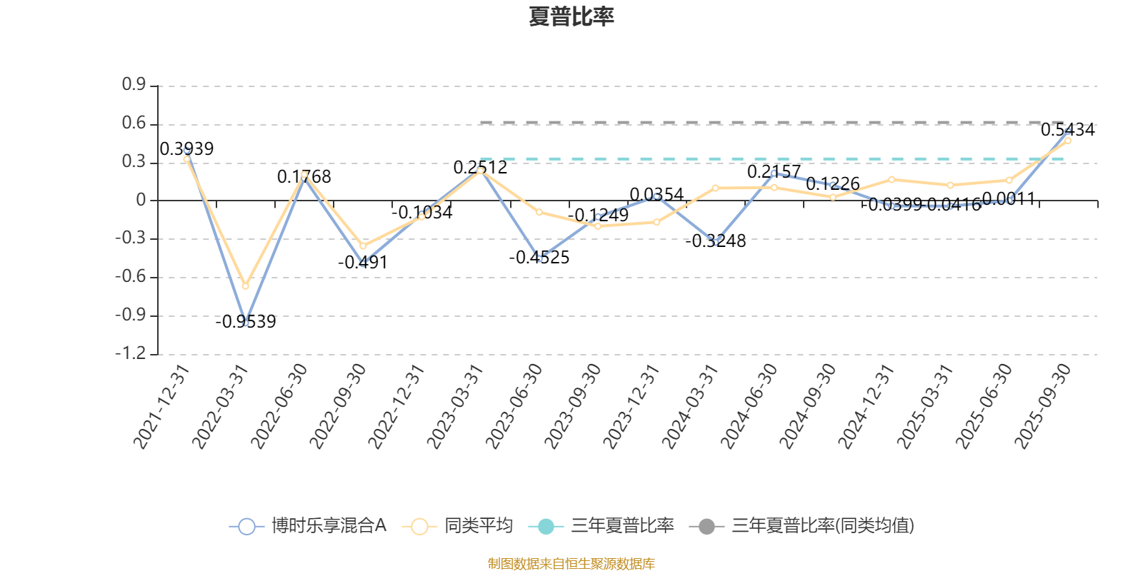 截至9月30日,基金近三年夏普比率为0.3261,位于同类可比基金431/553。