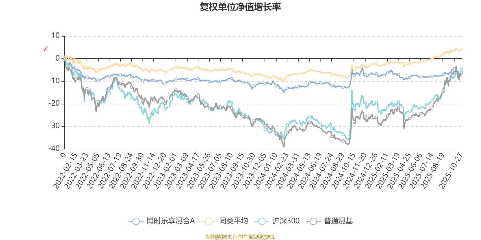 截至10月27日,博时乐享混合A近三个月复权单位净值增长率为1.82%,位于同类可比基金390/629;近半年复权单位净值增长率为2.43%,位于同类可比基金549/629;近一年复权单位净值增长率为0.33%,位于同类可比基金619/623;近三年复权单位净值增长率为3.77%,位于同类可比基金483/557。