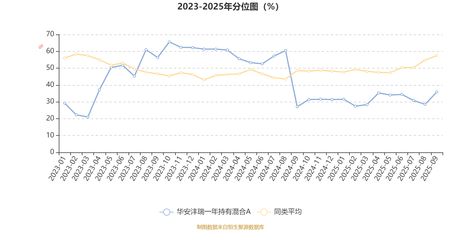 通过所选区间该基金净值增长率分位图,可以观察该基金与同类基金业绩比较情况。图为坐标原点到区间内某时点的净值增长率在同类基金中的分位数。