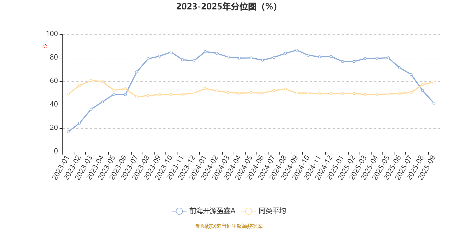 通过所选区间该基金净值增长率分位图,可以观察该基金与同类基金业绩比较情况。图为坐标原点到区间内某时点的净值增长率在同类基金中的分位数。
