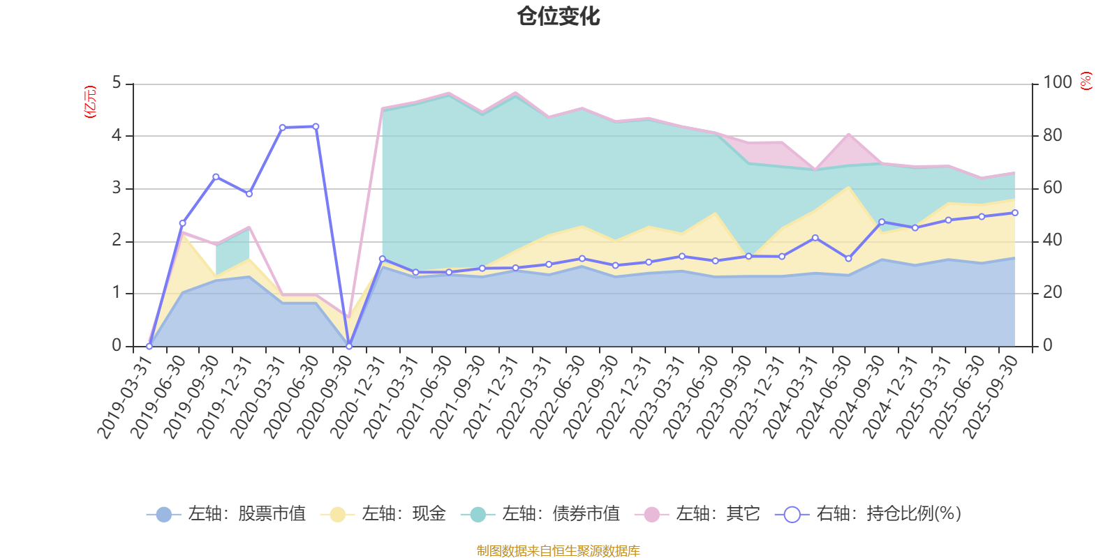 据定期报告数据统计,近三年平均股票仓位为40.26%,同类平均为72.35%。2020年上半年末基金达到83.71%的最高仓位,2021年一季度末最低,为28.21%。
