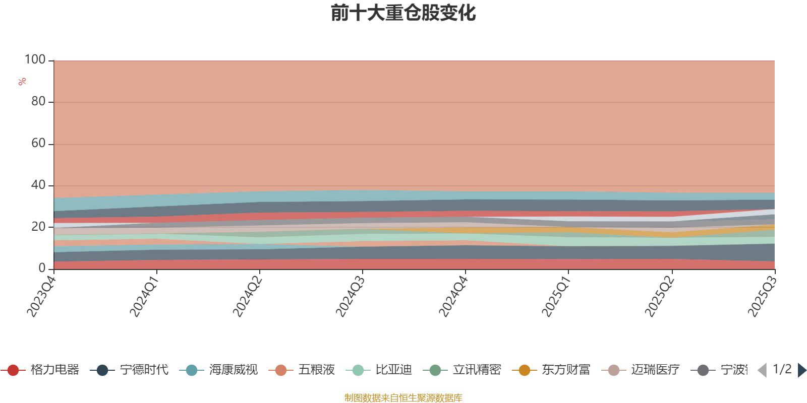 截至2025年三季度末,基金十大重仓股分别是宁德时代、美的集团、格力电器、立讯精密、比亚迪、贵州茅台、东方财富、汇川技术、宁波银行、中际旭创。