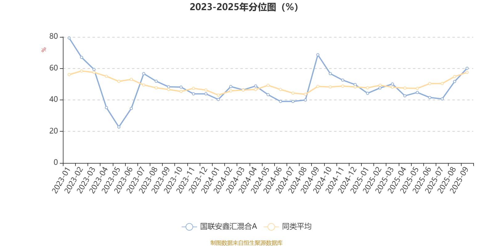 通过所选区间该基金净值增长率分位图,可以观察该基金与同类基金业绩比较情况。图为坐标原点到区间内某时点的净值增长率在同类基金中的分位数。