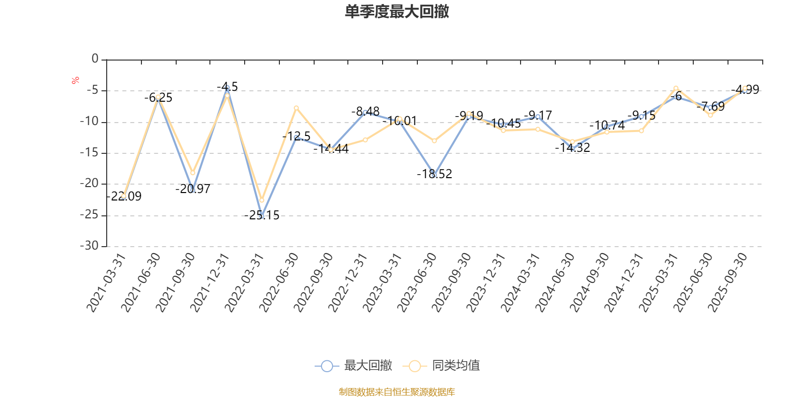 截至10月27日,基金近三年最大回撤为43.27%,同类可比基金排名63/74。单季度最大回撤出现在2022年一季度,为25.15%。