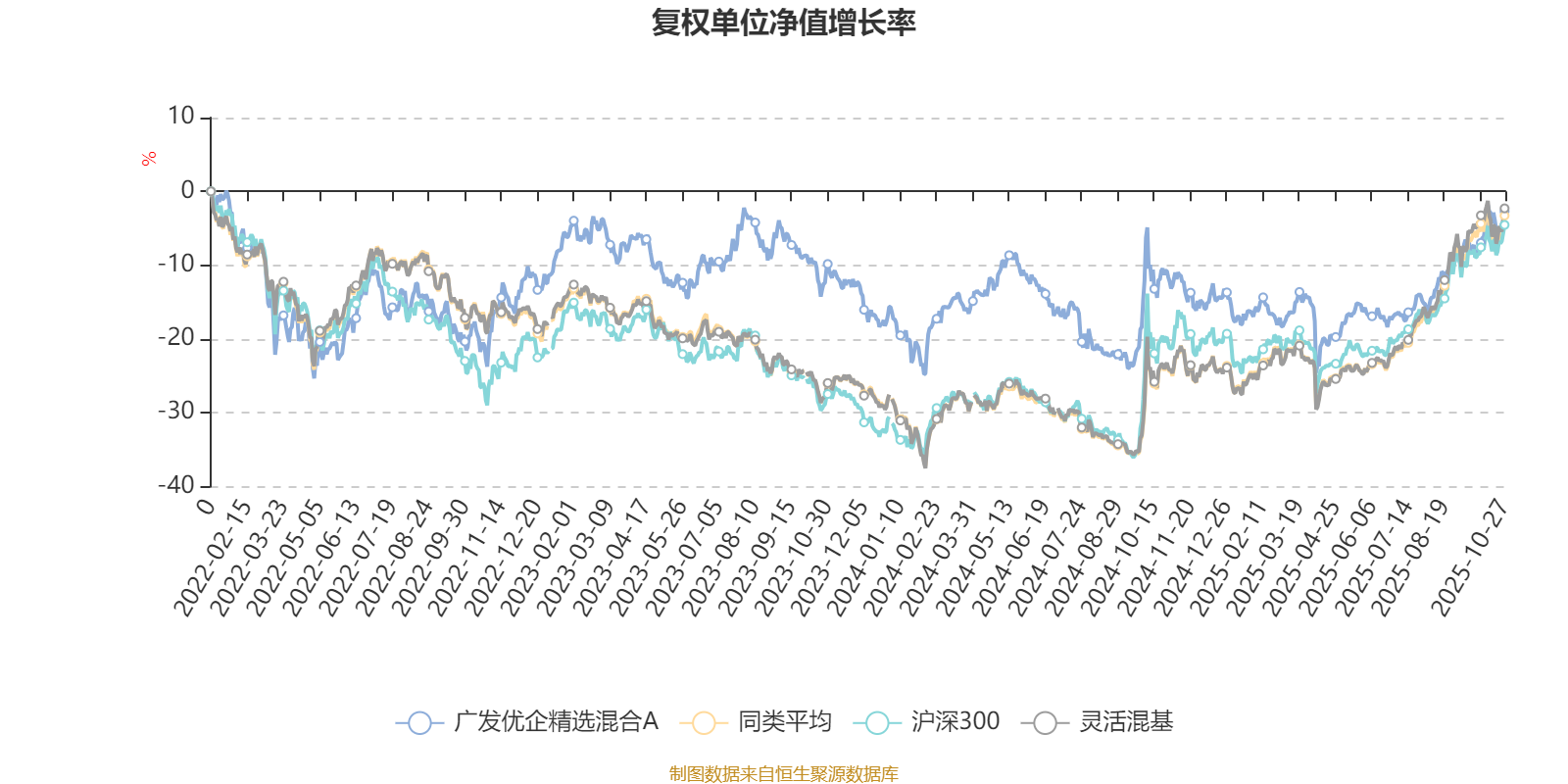 截至10月27日,广发优企精选混合A近三个月复权单位净值增长率为13.35%,位于同类可比基金596/1287;近半年复权单位净值增长率为21.22%,位于同类可比基金725/1287;近一年复权单位净值增长率为9.03%,位于同类可比基金988/1287;近三年复权单位净值增长率为23.05%,位于同类可比基金464/1286。