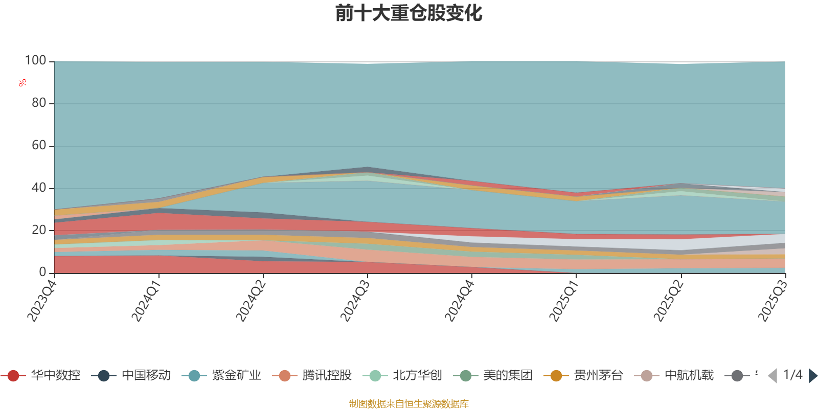截至2025年三季度末,基金十大重仓股分别是中航西飞、腾讯控股、中航高科、中航机载、宁德时代、紫金矿业、中芯国际、阿里巴巴-W、贵州茅台、双汇发展。