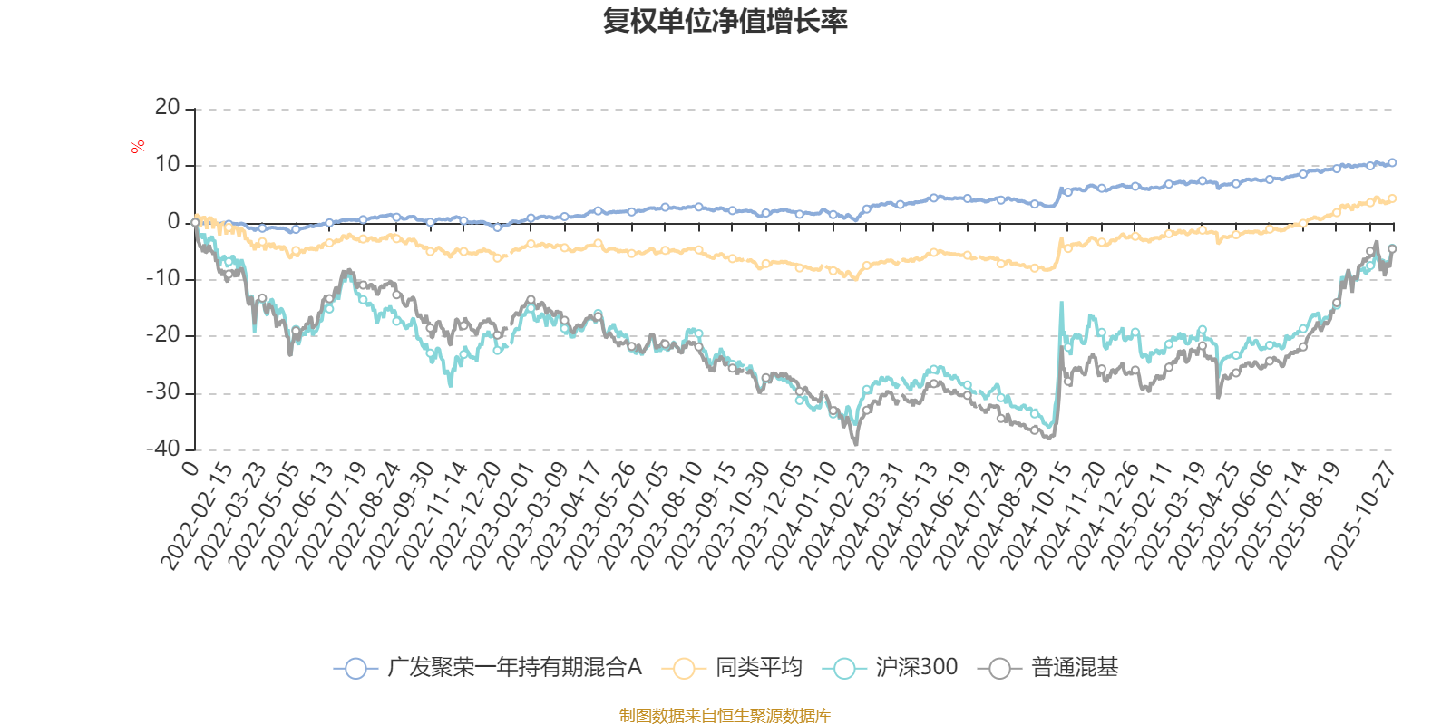 截至10月27日,广发聚荣一年持有期混合A近三个月复权单位净值增长率为1.30%,位于同类可比基金465/629;近半年复权单位净值增长率为3.47%,位于同类可比基金473/629;近一年复权单位净值增长率为4.38%,位于同类可比基金500/623;近三年复权单位净值增长率为9.83%,位于同类可比基金347/557。