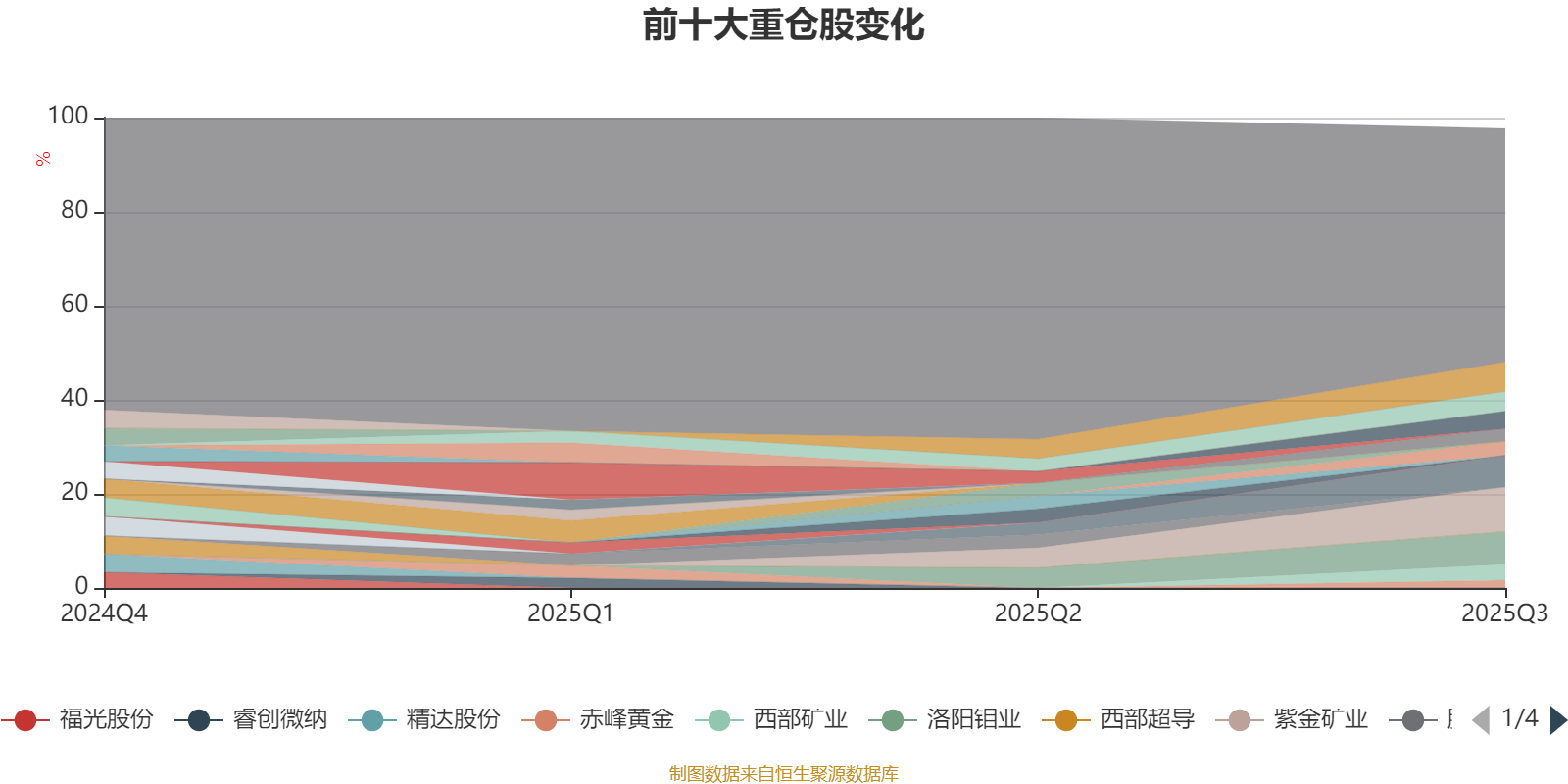 截至2025年三季度末,基金十大重仓股分别是紫金矿业、洛阳钼业、招金矿业、云铝股份、山东黄金、金诚信、西部矿业、江西铜业股份、招商轮船、赤峰黄金。