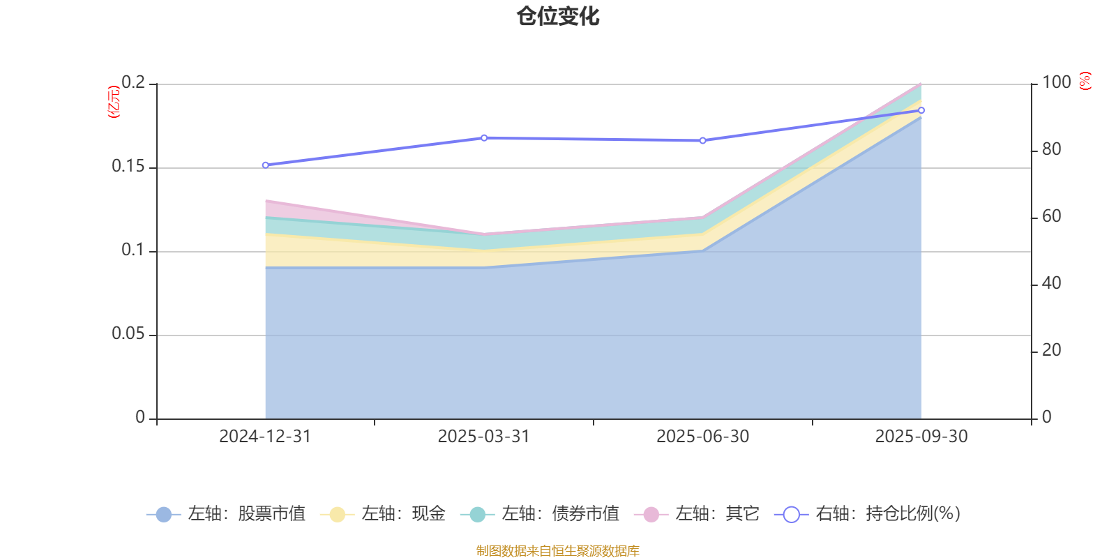 据定期报告数据统计,成立以来平均股票仓位为83.64%,同类平均为83.73%。2025年三季度末基金达到92.06%的最高仓位,2024年末最低,为75.67%。