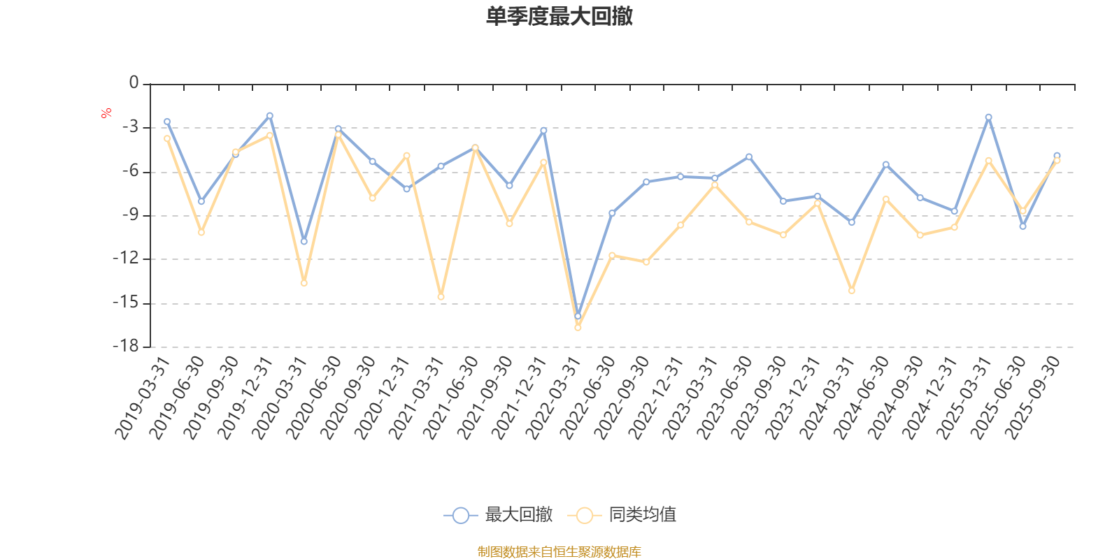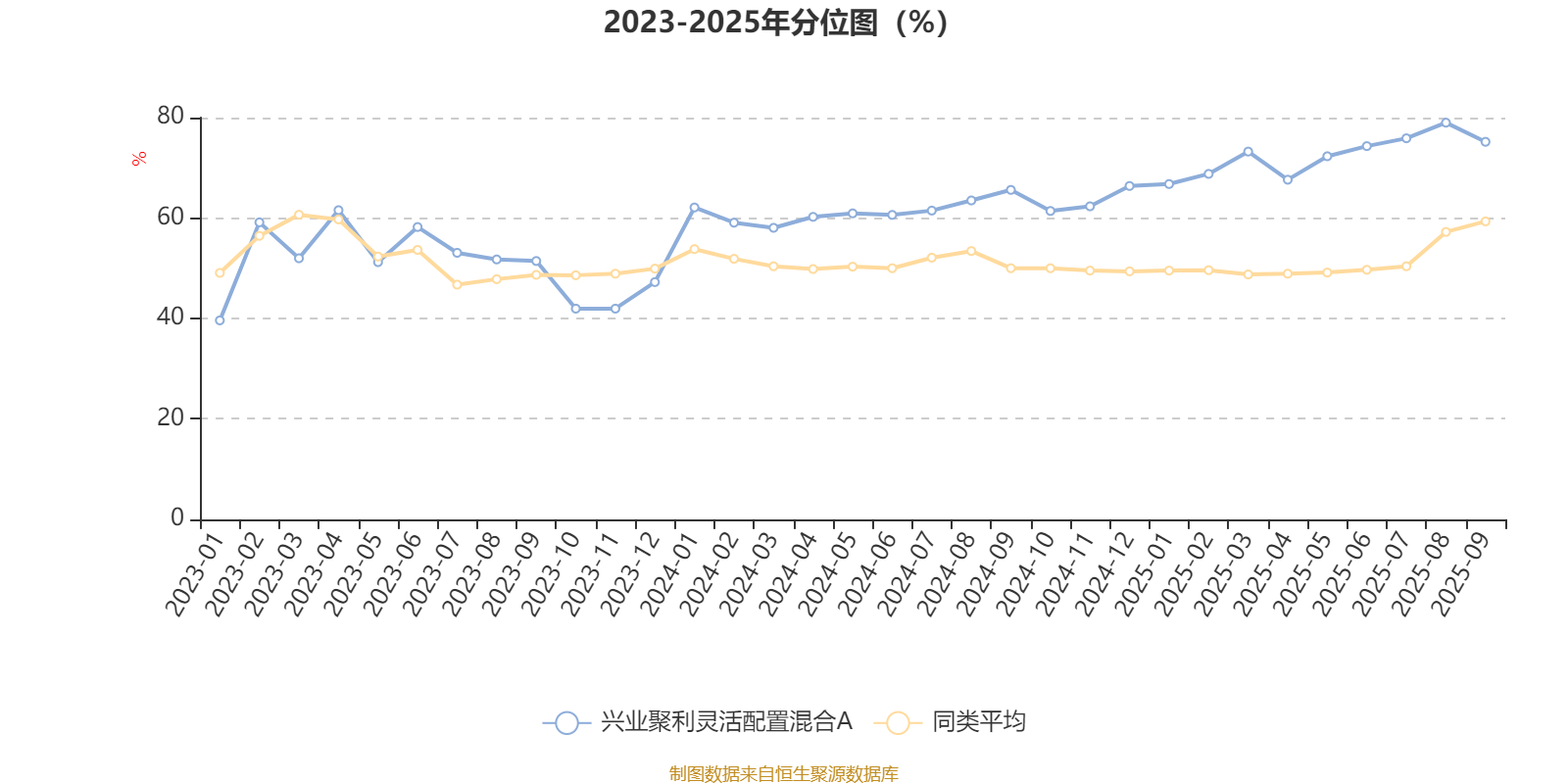通过所选区间该基金净值增长率分位图,可以观察该基金与同类基金业绩比较情况。图为坐标原点到区间内某时点的净值增长率在同类基金中的分位数。