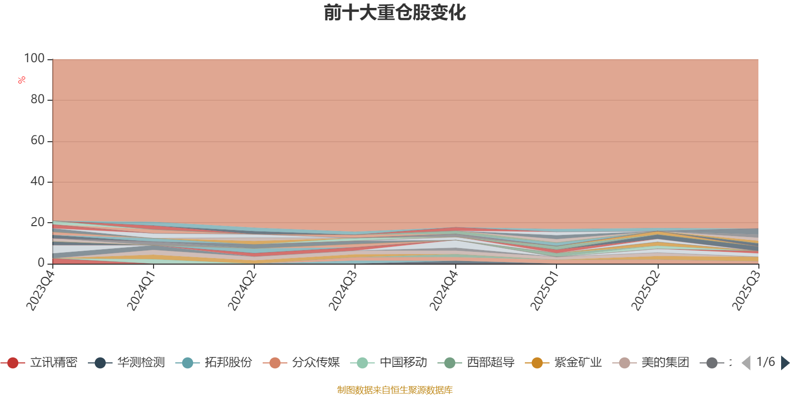 截至2025年三季度末,基金十大重仓股分别是新易盛、药明康德、紫金矿业、宁德时代、山东黄金、三一重工、德赛西威、分众传媒、道通科技、福耀玻璃。