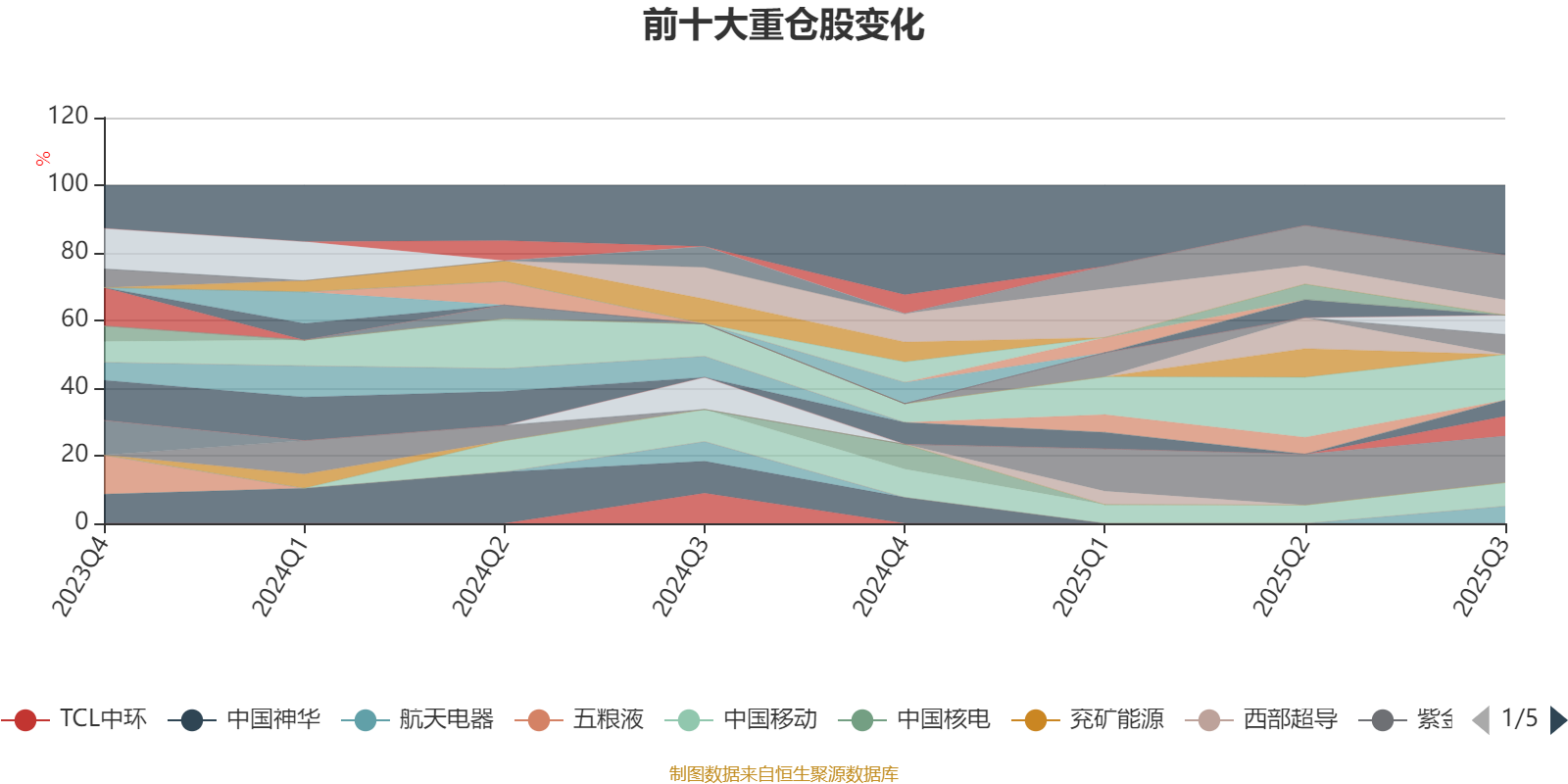 该基金持股集中度较高,近2年前十大重仓股集中度长期超过60%。截至2025年三季度末,基金十大重仓股分别是紫金矿业、招商银行、宁波银行、中国移动、铜陵有色、江西铜业、中航光电、航天电器、贵州茅台、长江电力。