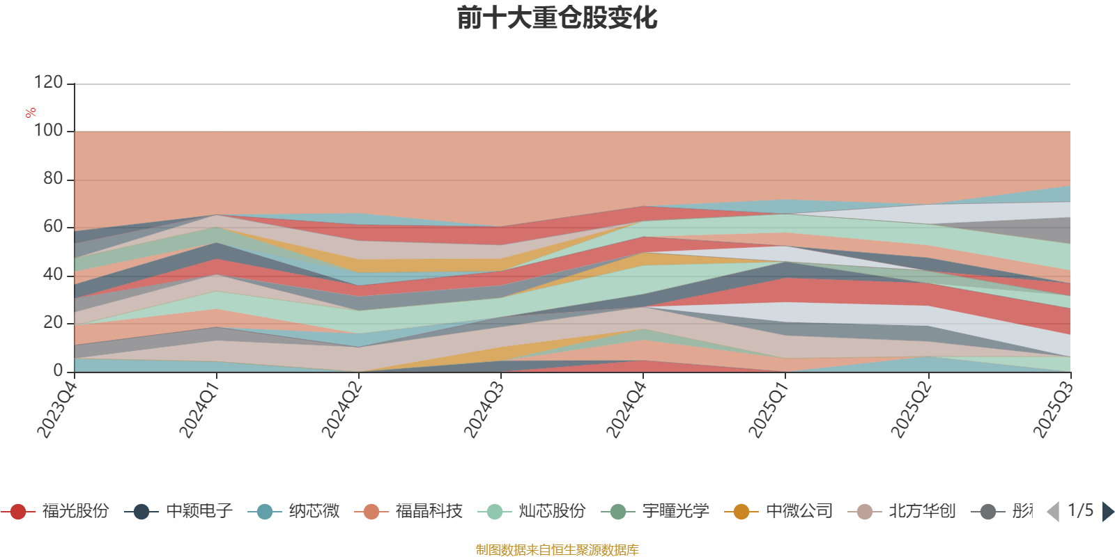 该基金持股集中度较高。截至2025年三季度末,基金十大重仓股分别是中芯国际、华虹半导体、上海复旦、芯原股份、兆易创新、杰华特、灿芯股份、翱捷科技、寒武纪、海光信息。