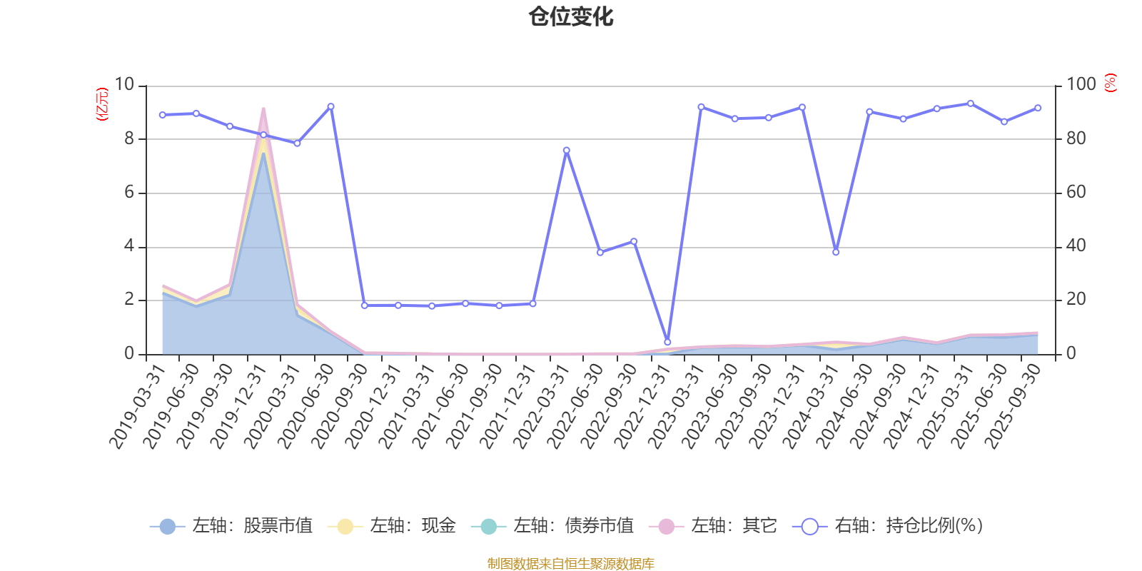 据定期报告数据统计,近三年平均股票仓位为78.63%,同类平均为72.35%。2025年一季度末基金达到93.39%的最高仓位,2022年末最低,为4.58%。
