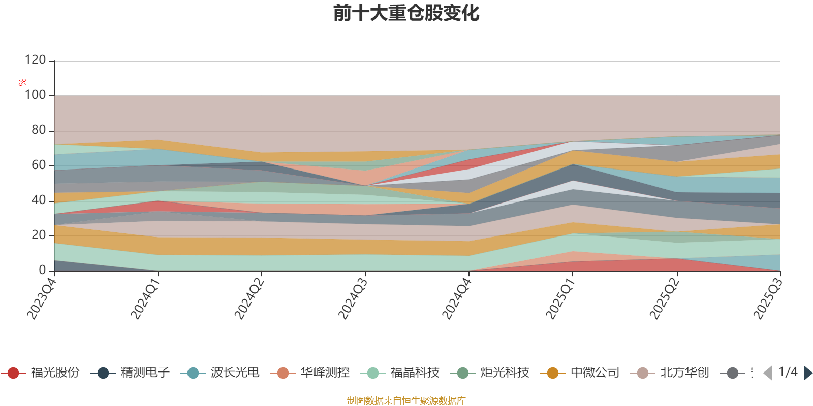 该基金持股集中度较高,近2年前十大重仓股集中度长期超过60%。截至2025年三季度末,基金十大重仓股分别是波长光电、茂莱光学、福晶科技、京仪装备、汇成真空、中微公司、中科飞测、伟测科技、华海清科、芯源微。