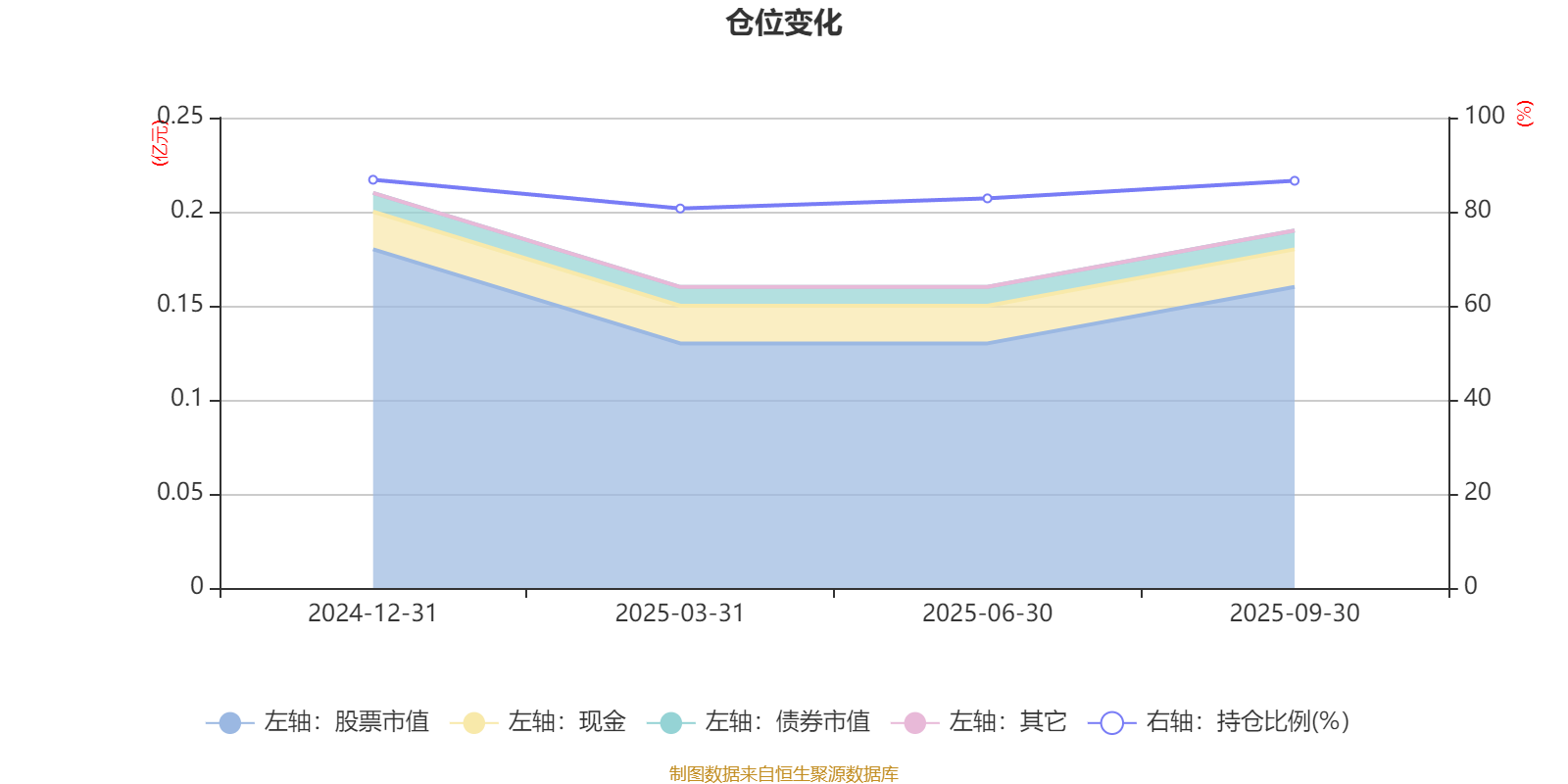 据定期报告数据统计,成立以来平均股票仓位为84.22%,同类平均为83.73%。2024年末基金达到86.79%的最高仓位,2025年一季度末最低,为80.68%。