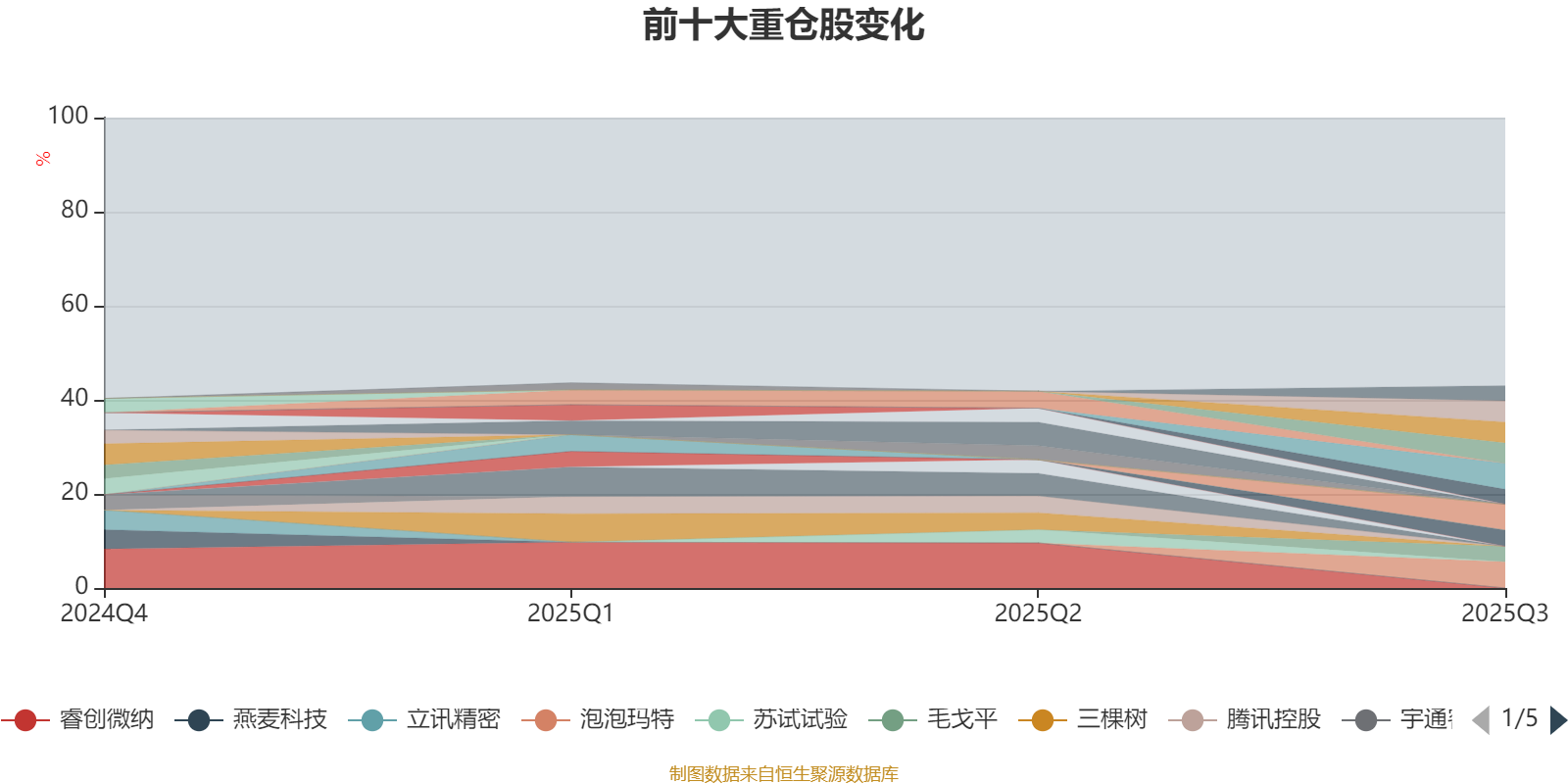 截至2025年三季度末,基金十大重仓股分别是泡泡玛特、恺英网络、中宠股份、快手-W、心动公司、阿里巴巴-W、极兔速递-W、毛戈平、美图公司、完美世界。