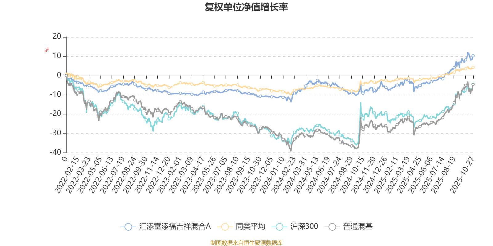 截至10月27日,汇添富添福吉祥混合A近三个月复权单位净值增长率为9.32%,位于同类可比基金31/629;近半年复权单位净值增长率为16.12%,位于同类可比基金26/629;近一年复权单位净值增长率为19.32%,位于同类可比基金27/623;近三年复权单位净值增长率为18.88%,位于同类可比基金95/557。