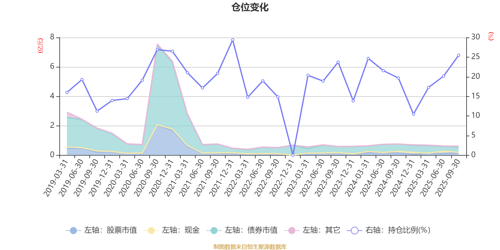 据定期报告数据统计,近三年平均股票仓位为18%,同类平均为19.14%。2021年末基金达到29.4%的最高仓位,2024年末最低,为10.45%。