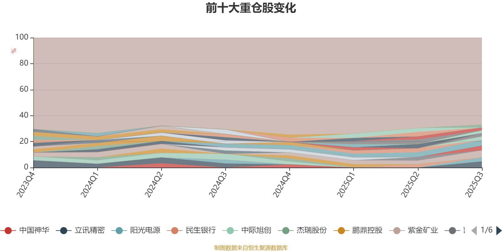 截至2025年三季度末,基金十大重仓股分别是紫金矿业、立讯精密、宁德时代、中金黄金、阳光电源、海油工程、汉得信息、新宙邦、亿纬锂能、沃尔核材。
