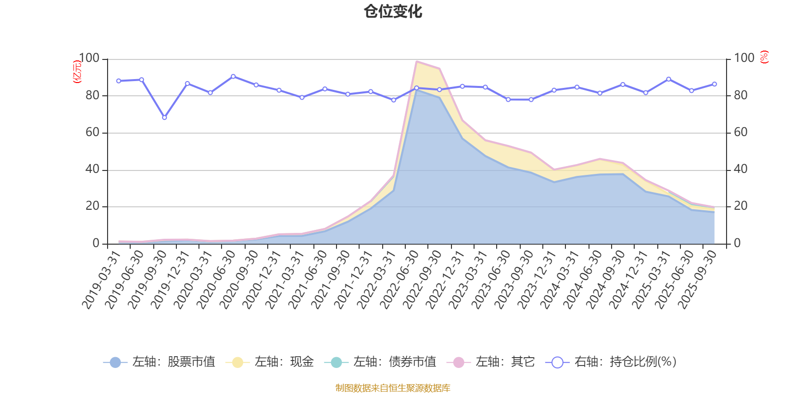 据定期报告数据统计,近三年平均股票仓位为83.49%,同类平均为86.15%。2020年上半年末基金达到90.55%的最高仓位,2019年三季度末最低,为68.34%。