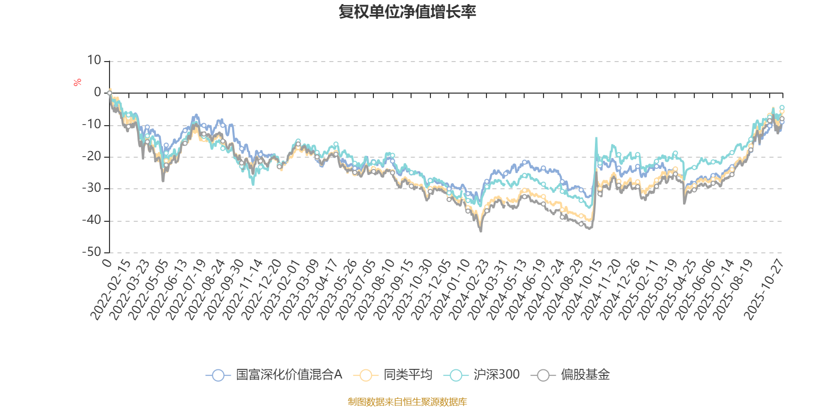 截至10月27日,国富深化价值混合A近三个月复权单位净值增长率为15.63%,位于同类可比基金68/130;近半年复权单位净值增长率为27.05%,位于同类可比基金74/130;近一年复权单位净值增长率为16.77%,位于同类可比基金97/130;近三年复权单位净值增长率为14.05%,位于同类可比基金85/124。