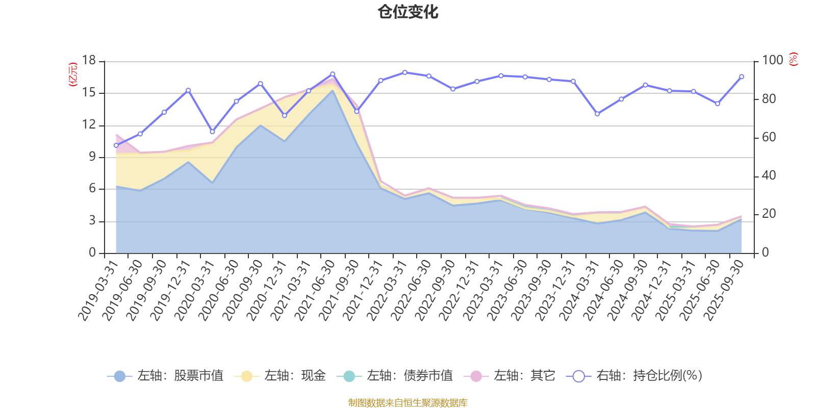 据定期报告数据统计,近三年平均股票仓位为86.07%,同类平均为85.66%。2022年一季度末基金达到94.15%的最高仓位,2019年一季度末最低,为56.18%。