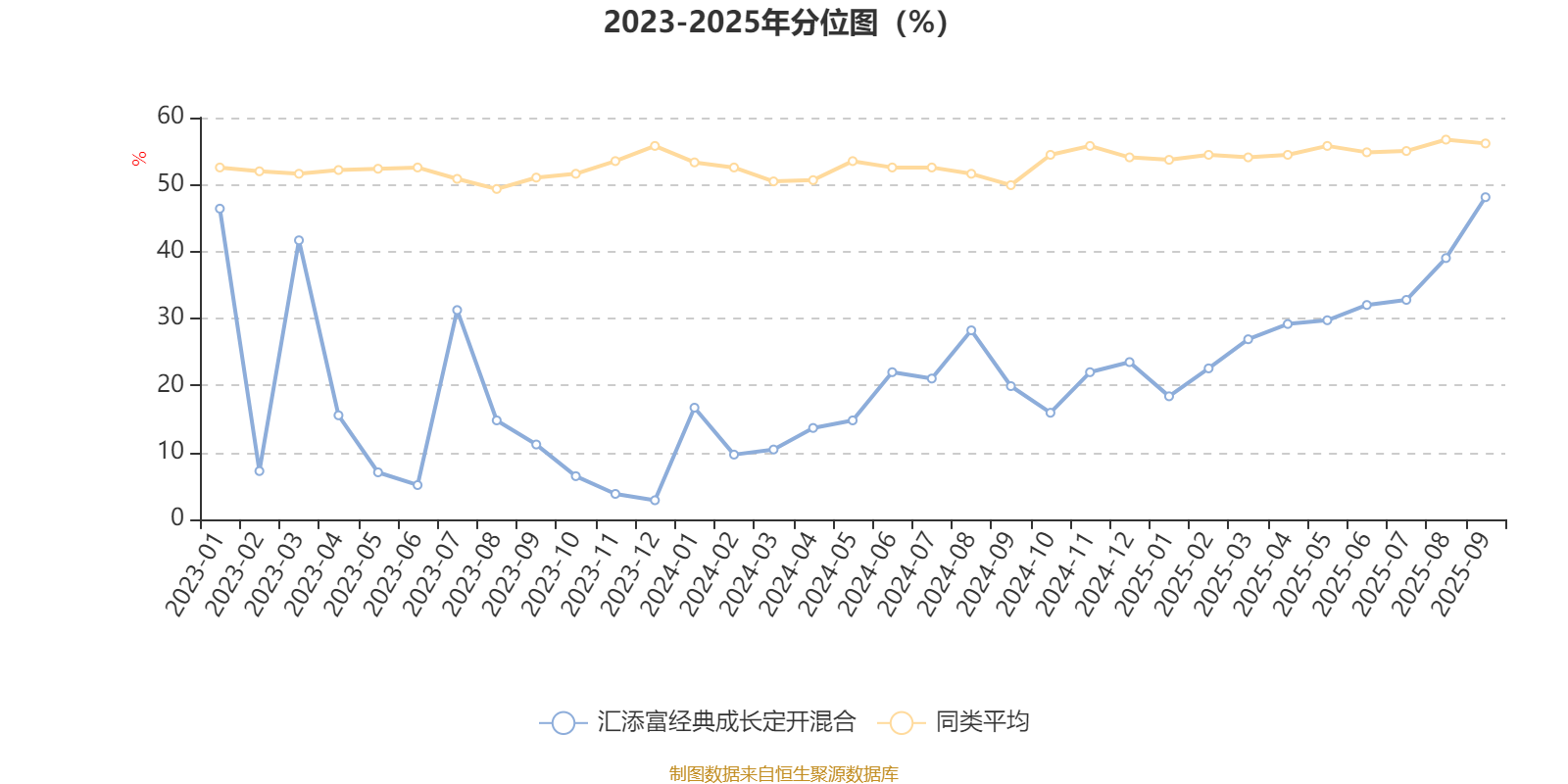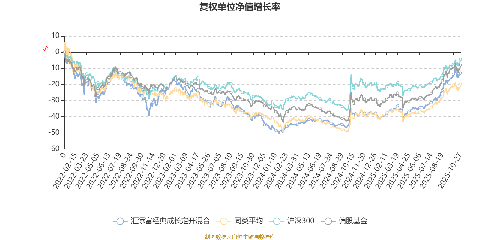 截至10月27日,汇添富经典成长定开混合近三个月复权单位净值增长率为23.05%,位于同类可比基金173/621;近半年复权单位净值增长率为38.28%,位于同类可比基金178/619;近一年复权单位净值增长率为40.79%,位于同类可比基金175/611;近三年复权单位净值增长率为38.35%,位于同类可比基金118/518。