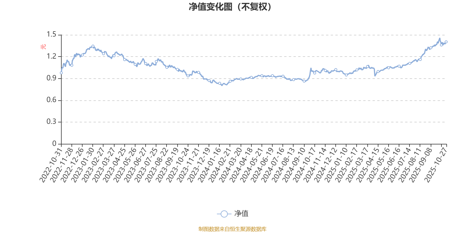 该基金属于偏股混合型基金。截至10月27日,单位净值为1.403元。基金经理是王天宜,目前管理的2只基金近一年均为正收益。其中,截至10月27日,汇添富经典成长定开混合近一年复权单位净值增长率最高,达40.79%;汇添富均衡回报混合发起式A最低,为35.18%。