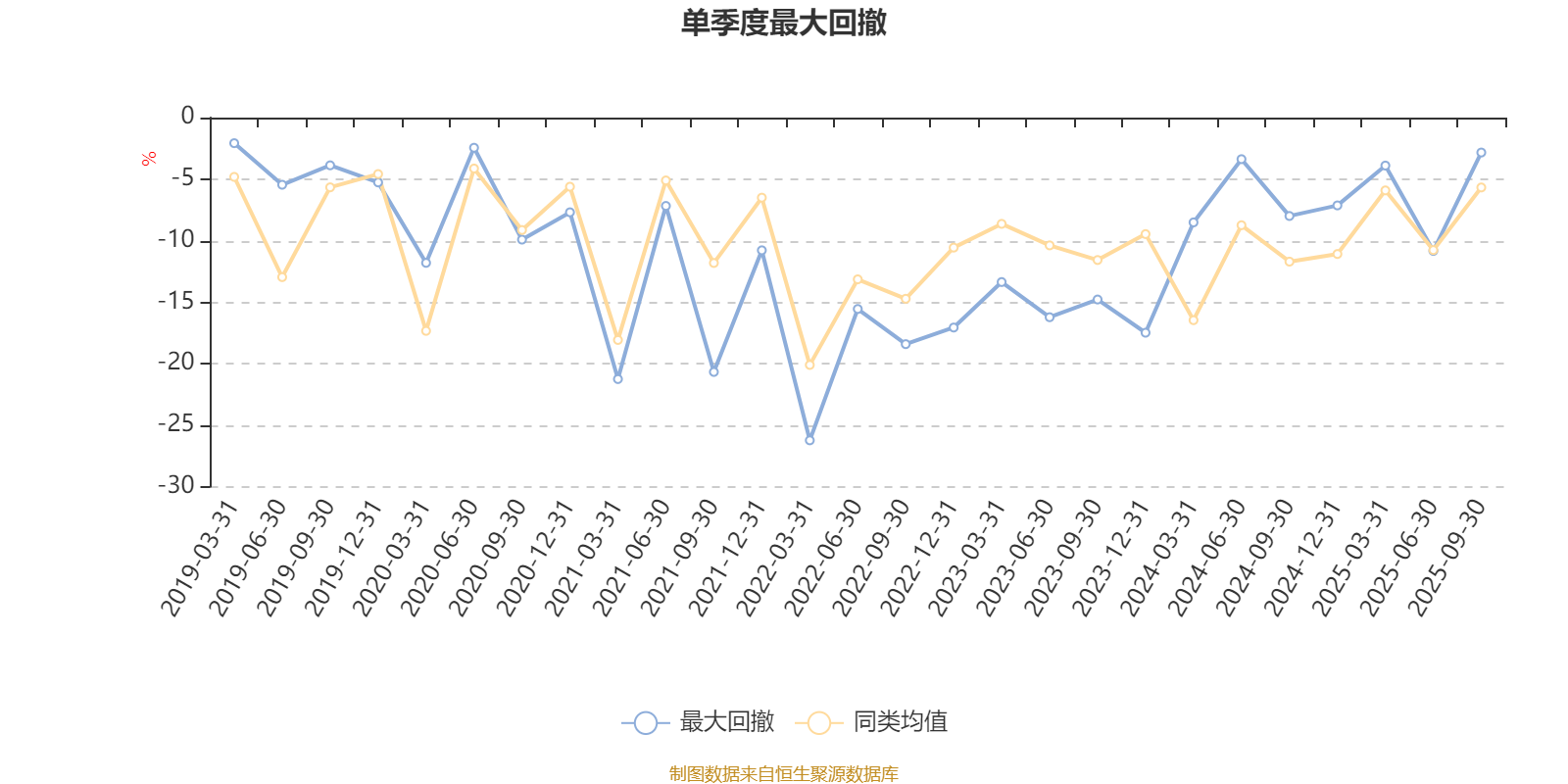 截至10月27日,基金近三年最大回撤为40.57%,同类可比基金排名364/513。单季度最大回撤出现在2022年一季度,为26.24%。