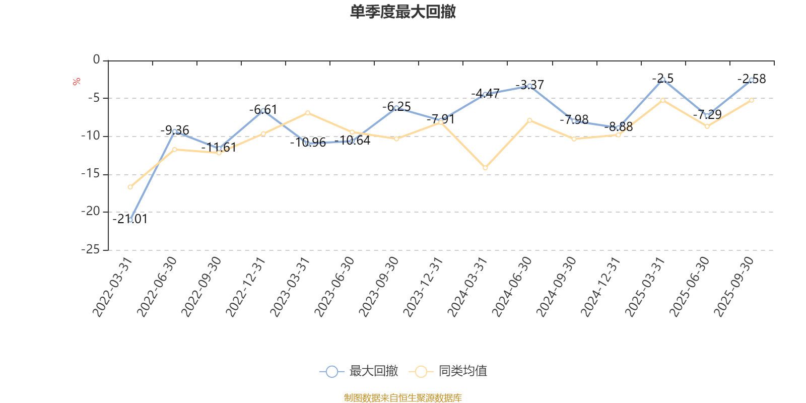 截至10月27日,基金近三年最大回撤为28.53%,同类可比基金排名491/1274。单季度最大回撤出现在2022年一季度,为21.01%。