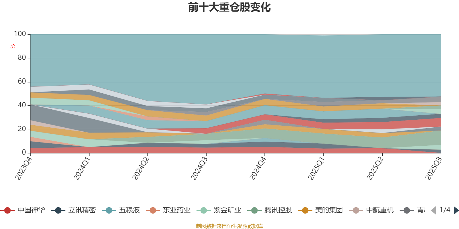 截至2025年三季度末,基金十大重仓股分别是腾讯控股、宁德时代、阿里巴巴-W、紫金矿业、恒瑞医药、中国银行、贵州茅台、中芯国际、中国平安、立讯精密。