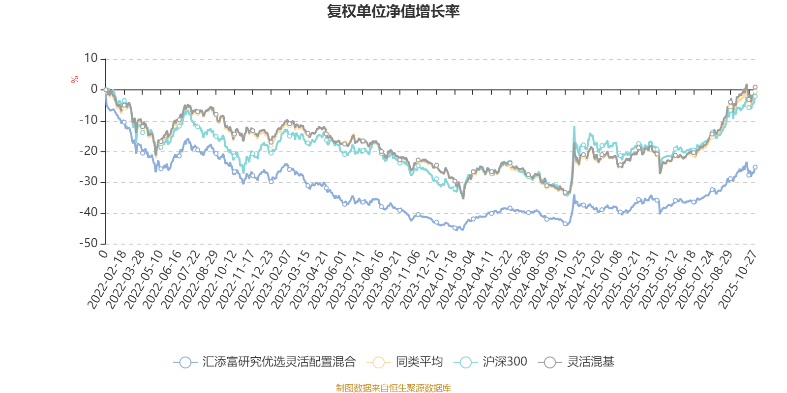 截至10月27日,汇添富研究优选灵活配置混合近三个月复权单位净值增长率为11.30%,位于同类可比基金688/1287;近半年复权单位净值增长率为19.54%,位于同类可比基金775/1287;近一年复权单位净值增长率为19.67%,位于同类可比基金703/1287;近三年复权单位净值增长率为6.04%,位于同类可比基金866/1286。