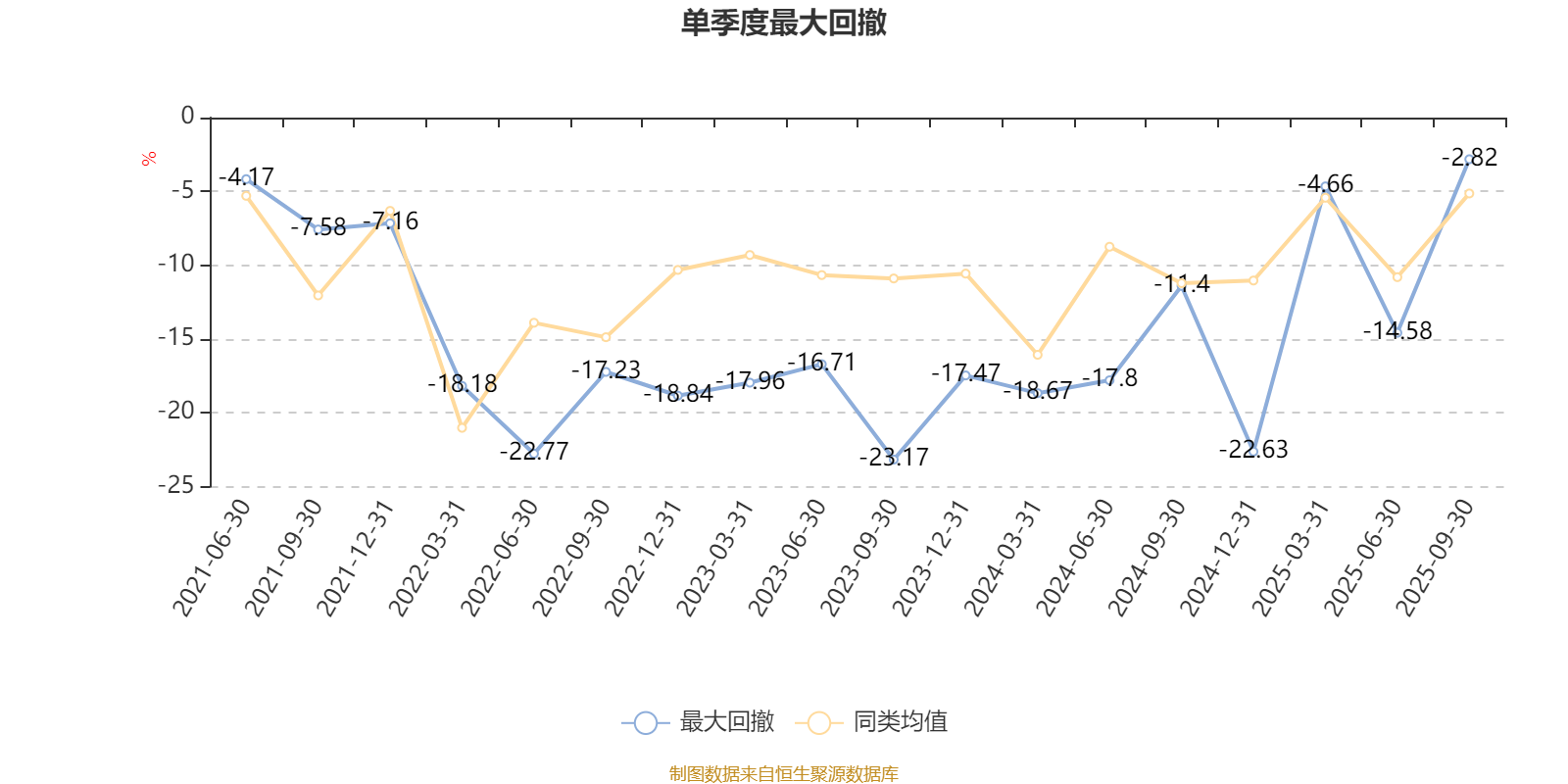 截至10月27日,基金近三年最大回撤为56.58%,同类可比基金排名173/177。单季度最大回撤出现在2023年三季度,为23.17%。