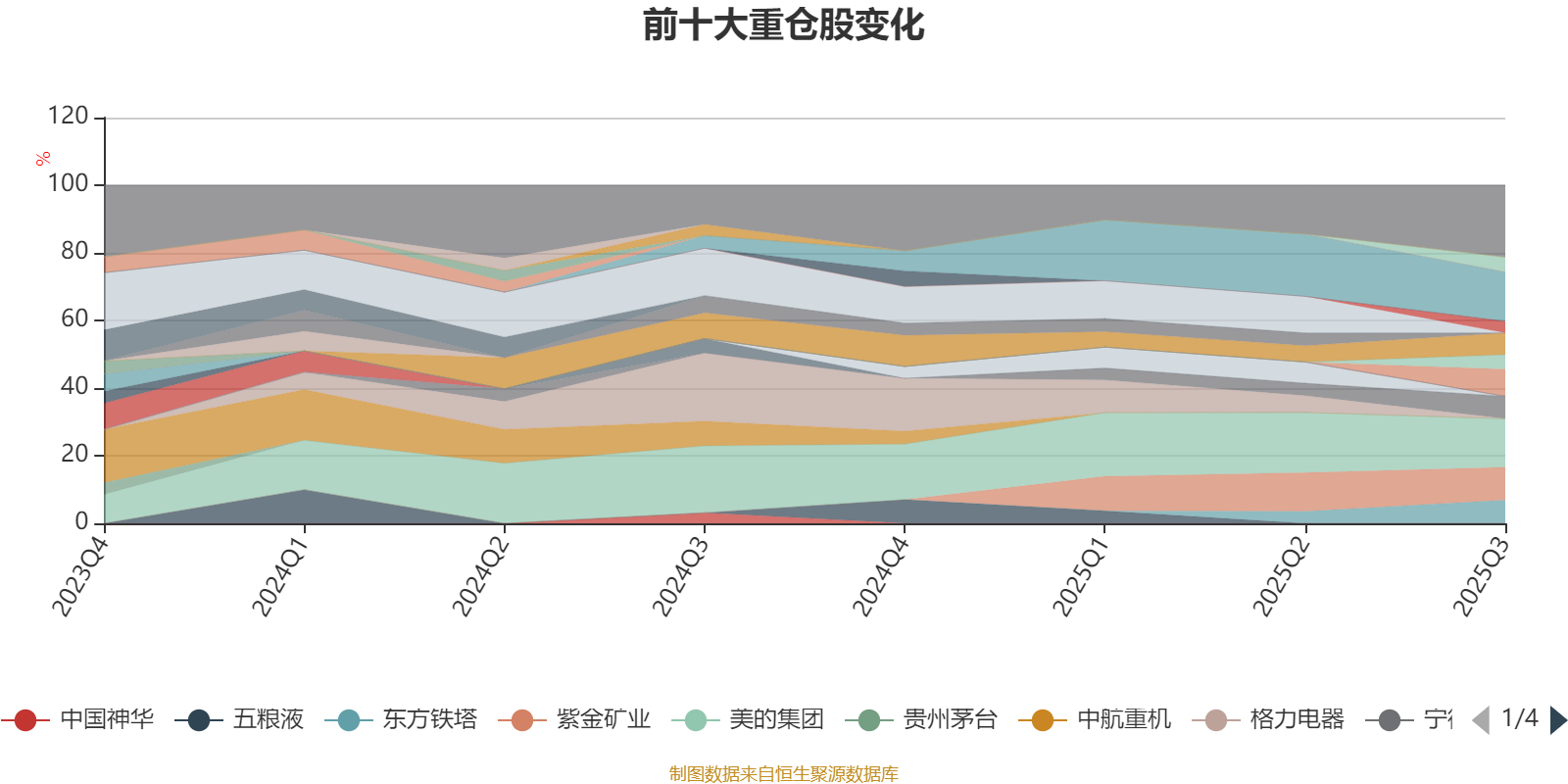 该基金持股集中度较高,近2年前十大重仓股集中度长期超过60%。截至2025年三季度末,基金十大重仓股分别是海尔智家、美的集团、紫金矿业、亚钾国际、东方铁塔、宁德时代、中国海油、云天化、山推股份、江钨装备。