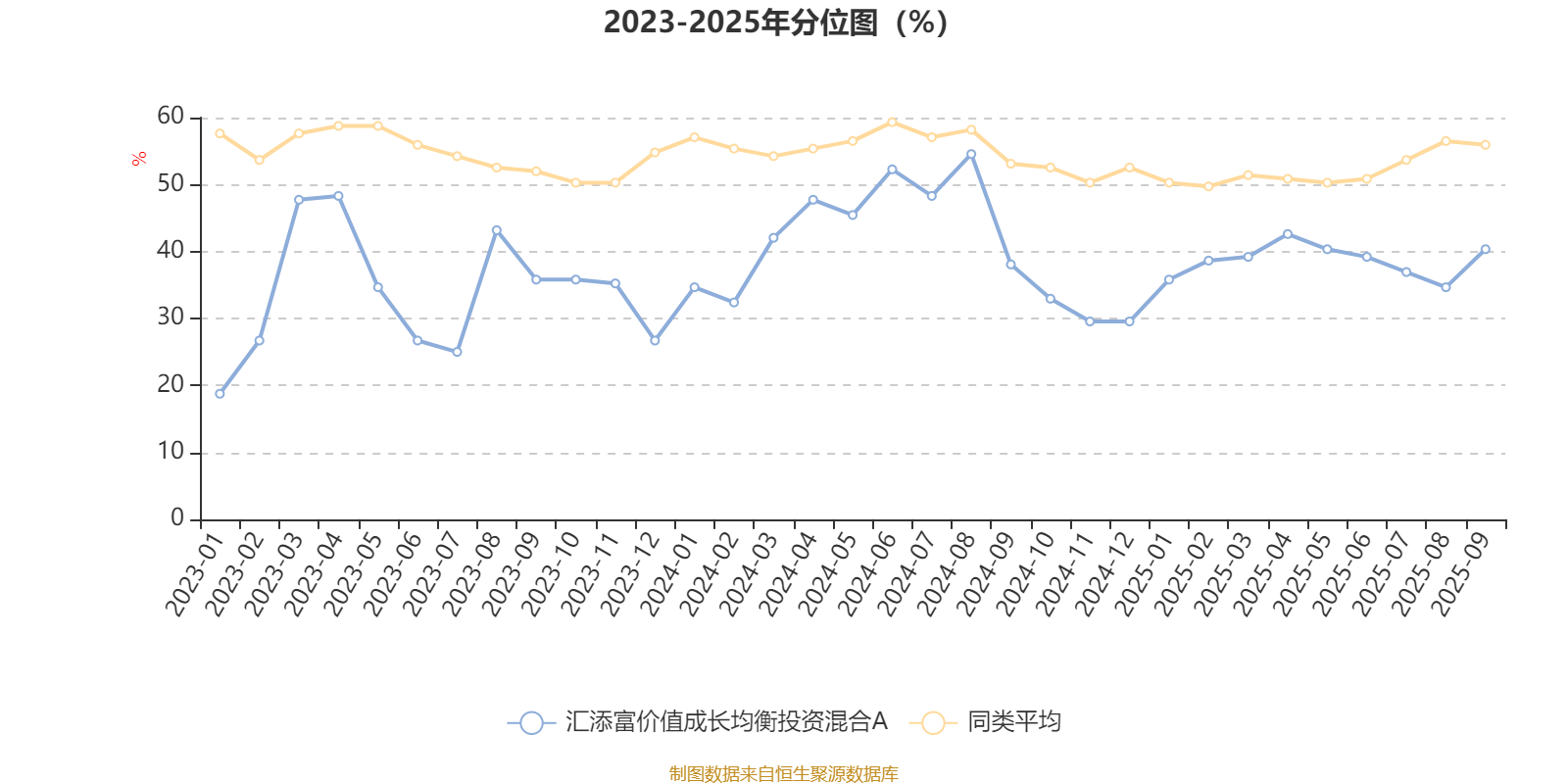 通过所选区间该基金净值增长率分位图,可以观察该基金与同类基金业绩比较情况。图为坐标原点到区间内某时点的净值增长率在同类基金中的分位数。