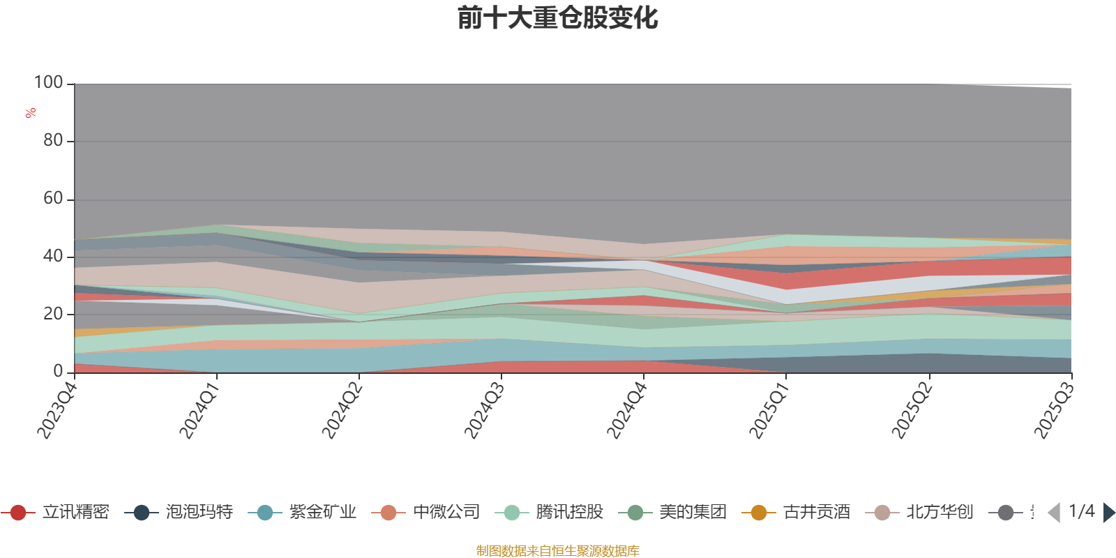 截至2025年三季度末,基金十大重仓股分别是腾讯控股、紫金矿业、中芯国际、ST华通、泡泡玛特、宁德时代、亿纬锂能、三生制药、恒瑞医药、中国太保。