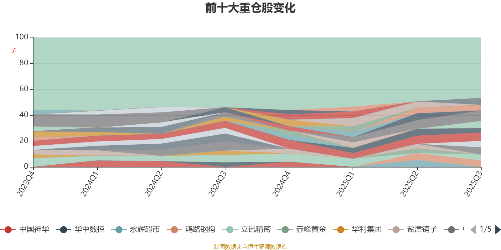 截至2025年三季度末,基金十大重仓股分别是杰克科技、耐普矿机、科达利、中际旭创、新易盛、紫金矿业、鸿路钢构、立讯精密、恺英网络、翔楼新材。