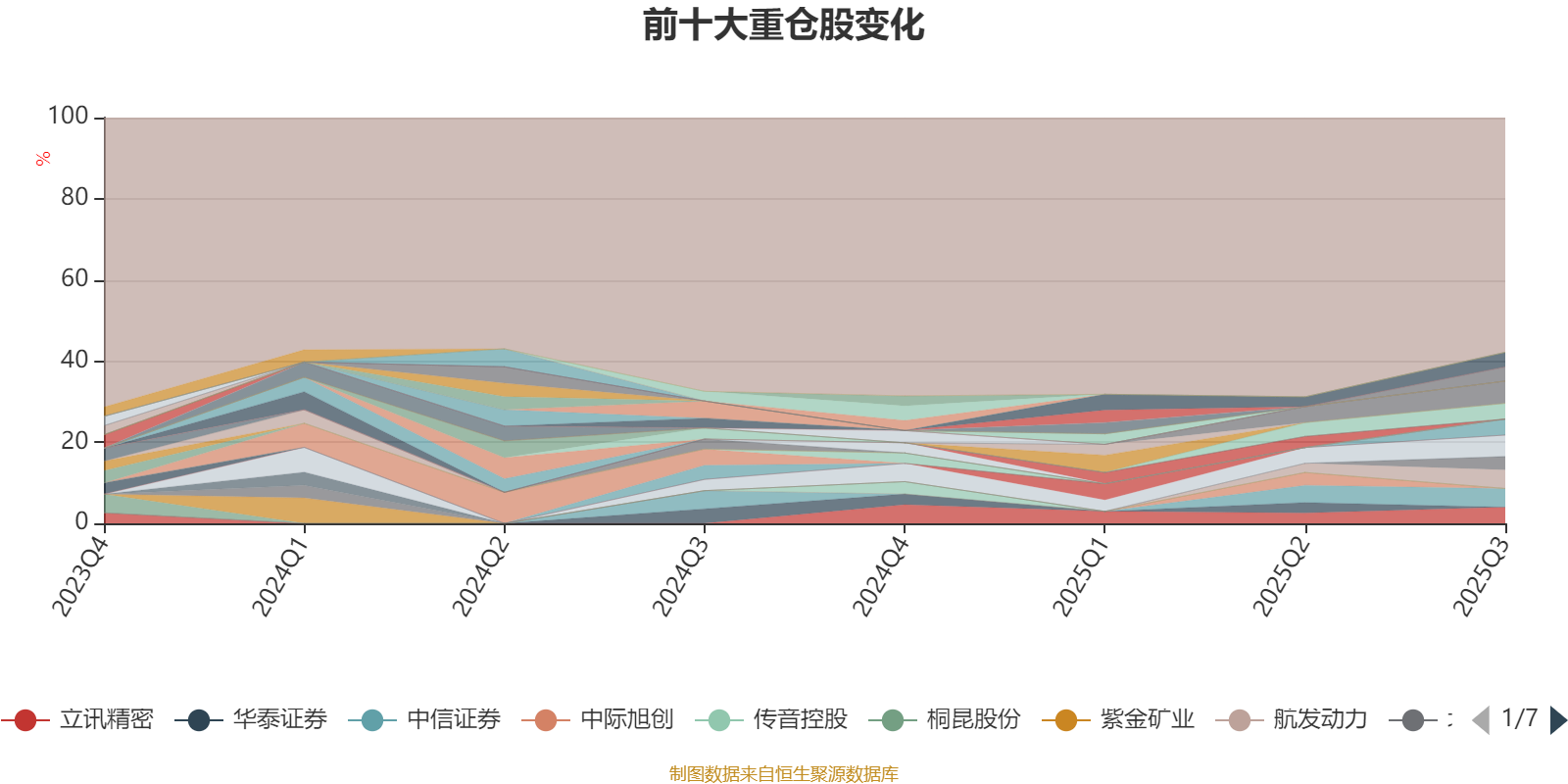 截至2025年三季度末,基金十大重仓股分别是中芯国际、宁德时代、中信证券、航发动力、立讯精密、金山办公、海光信息、温氏股份、苏州银行、北方华创。