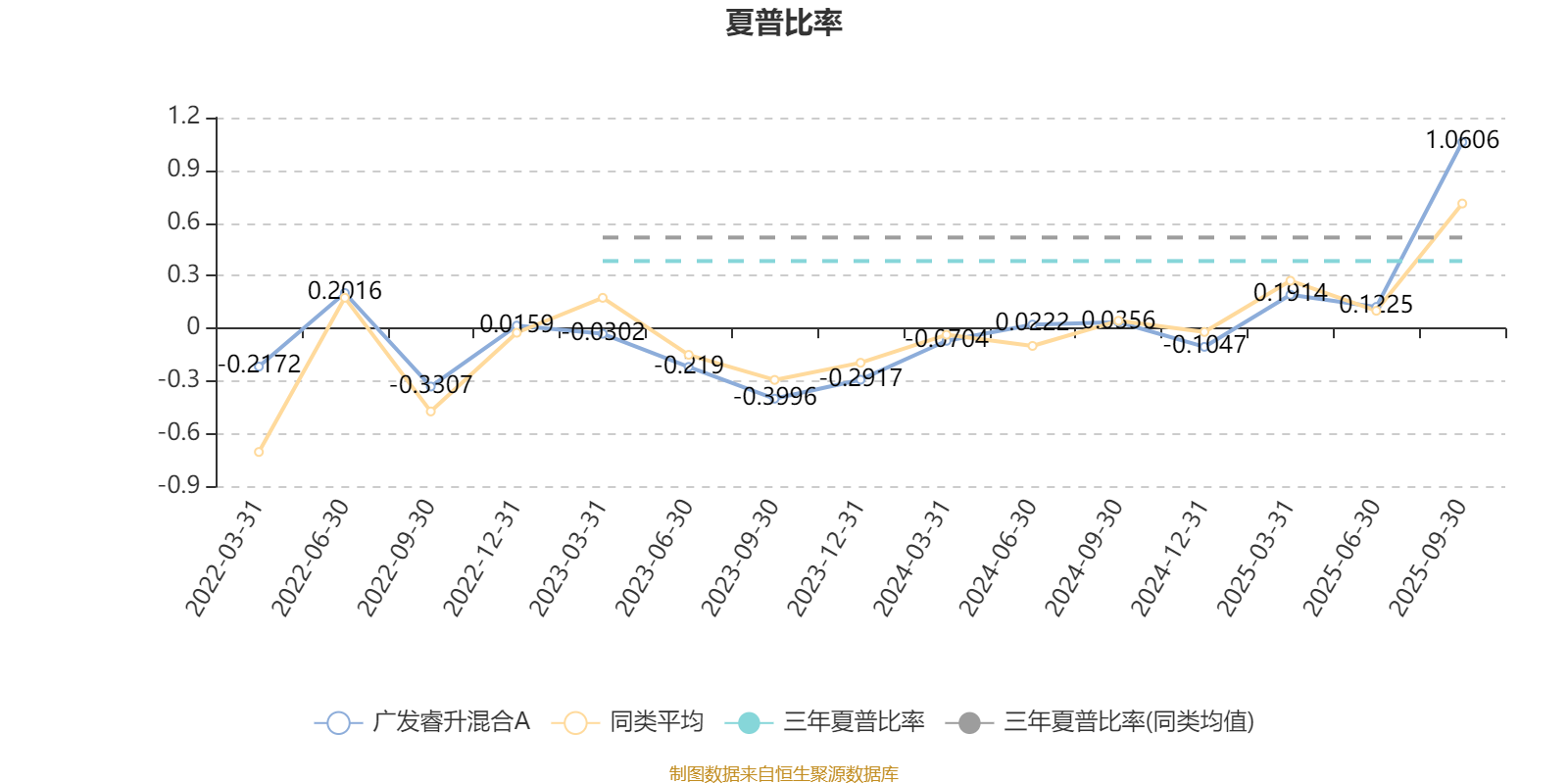 截至9月30日,基金近三年夏普比率为0.3837,位于同类可比基金349/518。