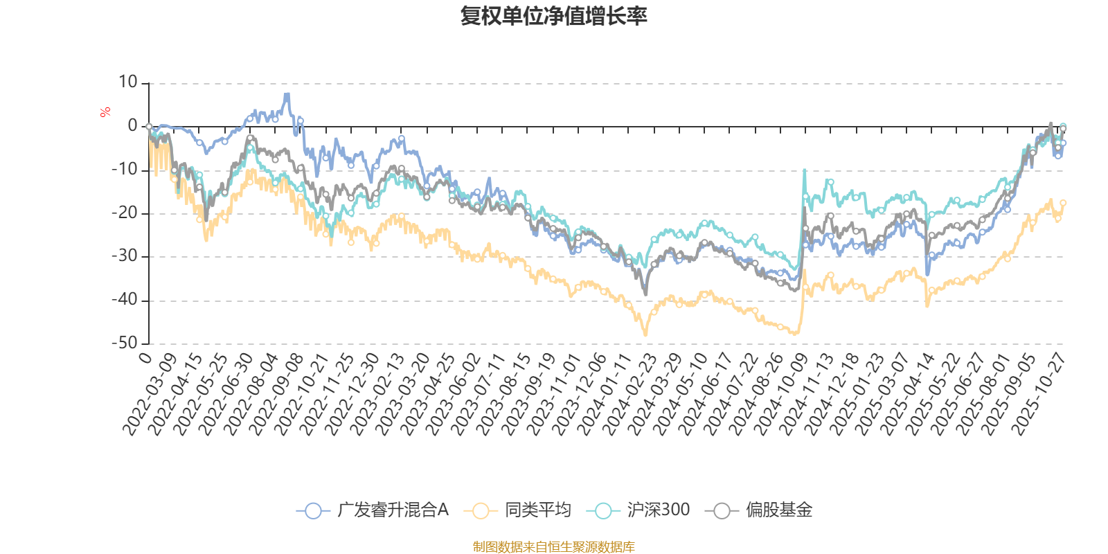 截至10月27日,广发睿升混合A近三个月复权单位净值增长率为18.93%,位于同类可比基金231/621;近半年复权单位净值增长率为35.86%,位于同类可比基金208/619;近一年复权单位净值增长率为30.32%,位于同类可比基金293/611;近三年复权单位净值增长率为3.73%,位于同类可比基金370/518。
