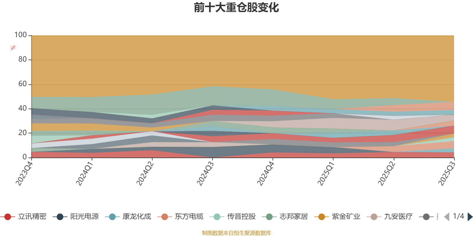 截至2025年三季度末,基金十大重仓股分别是山东黄金、宁德时代、东方电缆、圣泉集团、立讯精密、百普赛斯、中天科技、康龙化成、传音控股、紫金矿业。