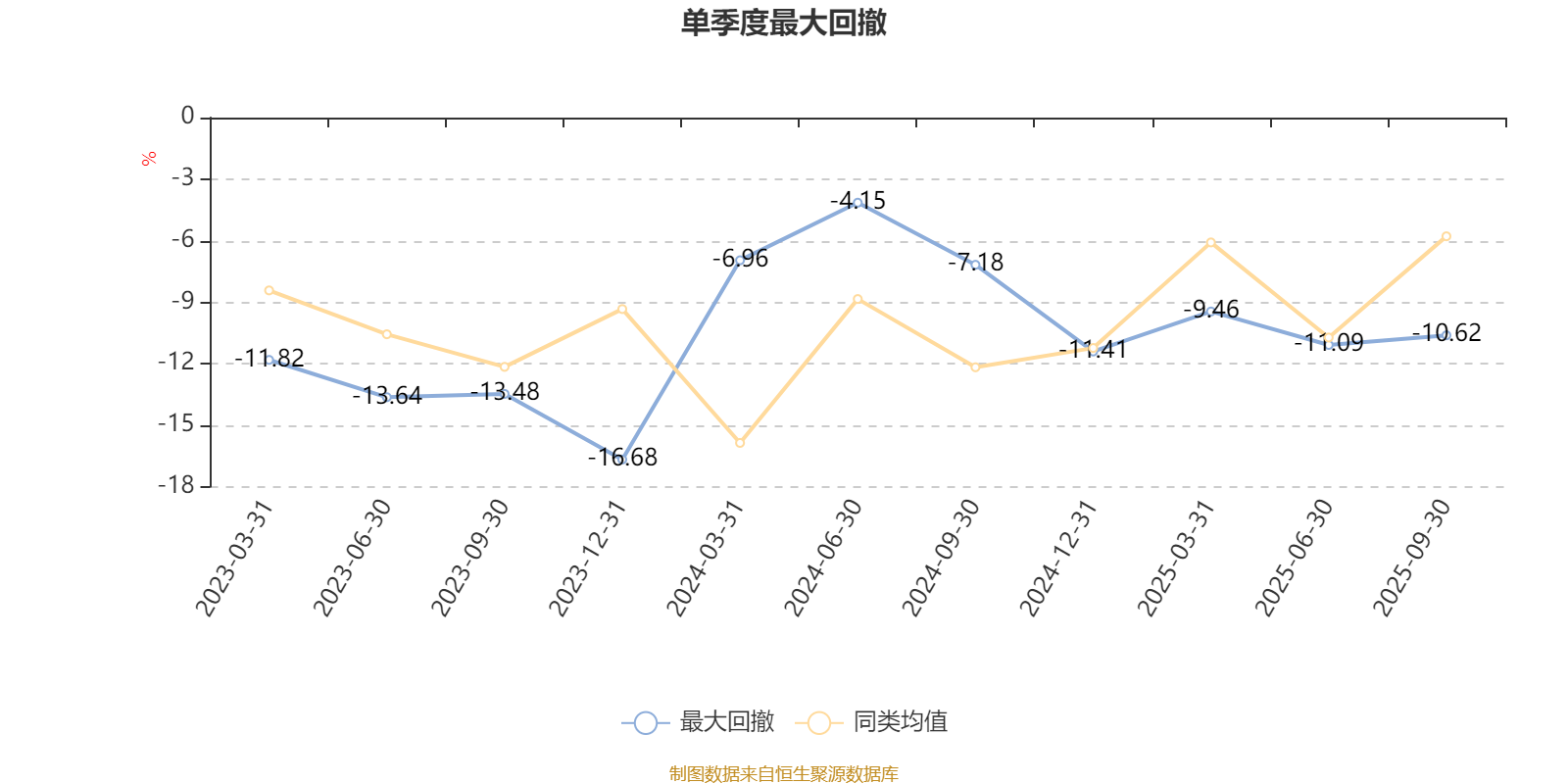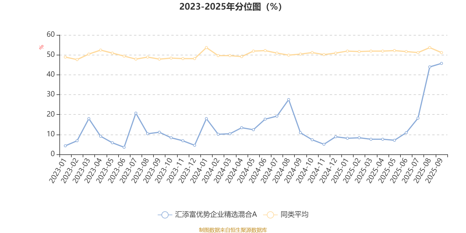 通过所选区间该基金净值增长率分位图,可以观察该基金与同类基金业绩比较情况。图为坐标原点到区间内某时点的净值增长率在同类基金中的分位数。