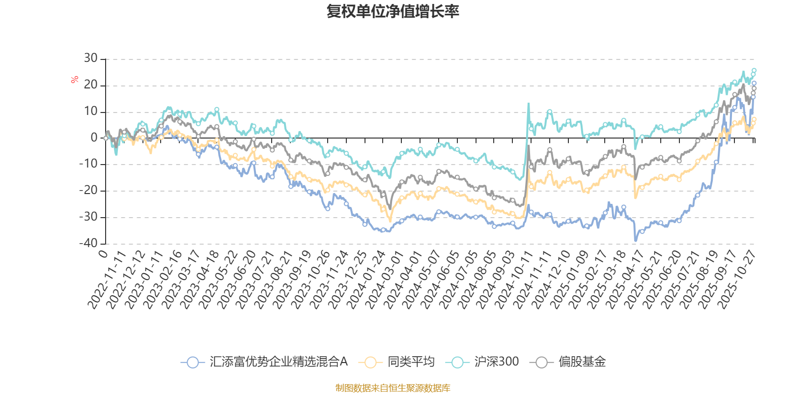 截至10月27日,汇添富优势企业精选混合A近三个月复权单位净值增长率为51.14%,位于同类可比基金18/689;近半年复权单位净值增长率为82.48%,位于同类可比基金16/688;近一年复权单位净值增长率为70.46%,位于同类可比基金28/653;近三年复权单位净值增长率为20.88%,位于同类可比基金145/364。