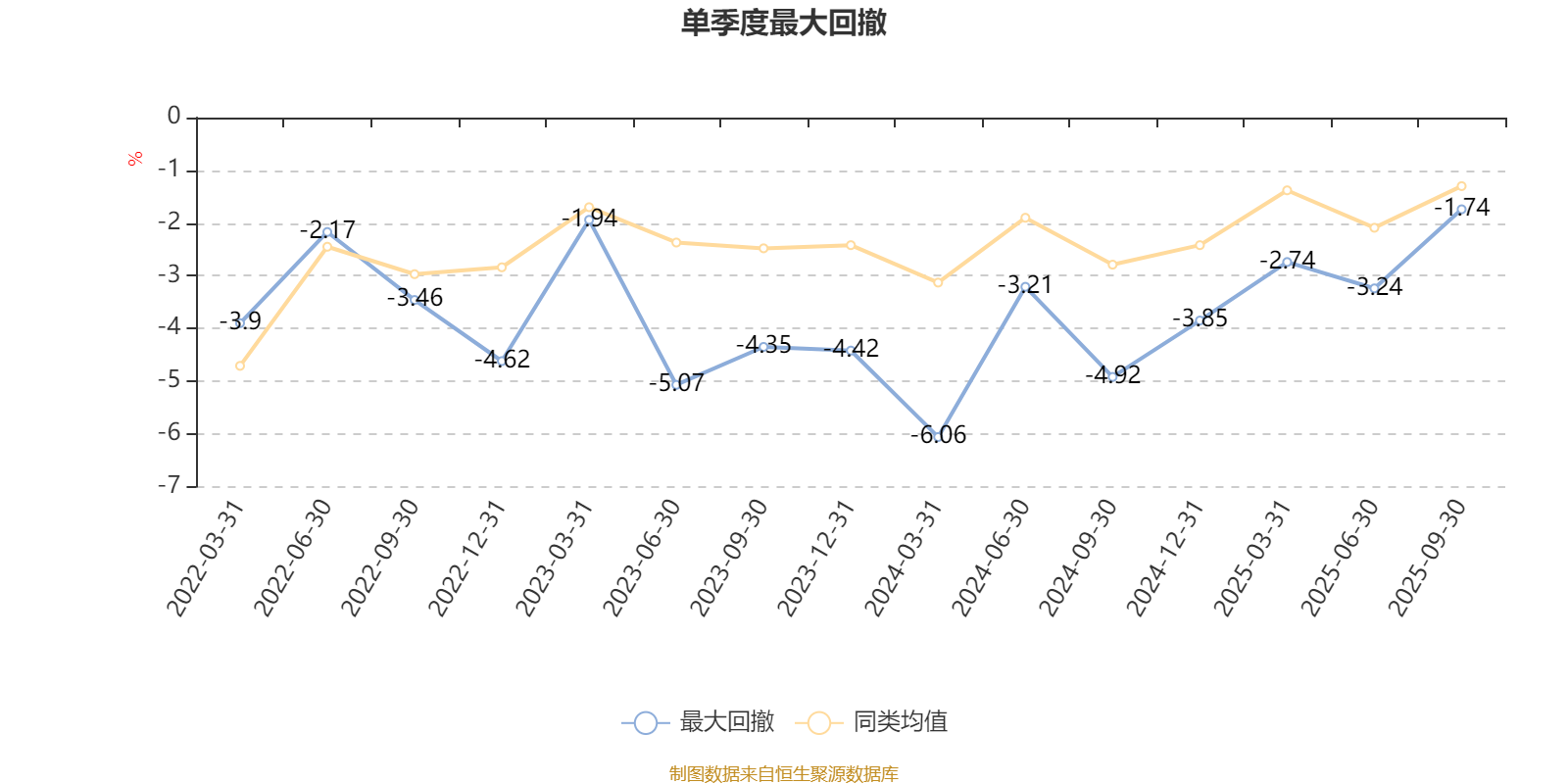 截至10月27日,基金近三年最大回撤为15.78%,同类可比基金排名495/535。单季度最大回撤出现在2024年一季度,为6.06%。